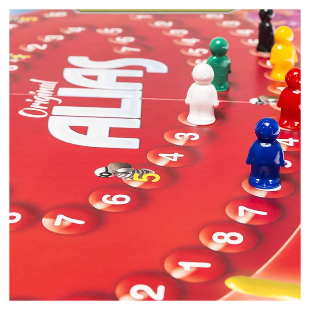 - Az Alias Original társasjáték tartalma: játéktábla, 400 darab szókártya, homokóra, 6 darab bábu, játékszabály.