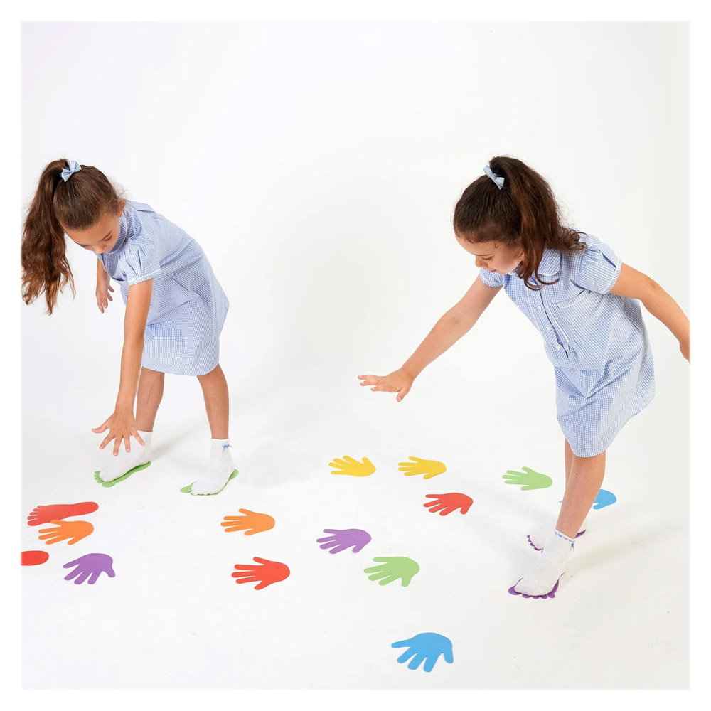 - Acest set colorat include 6 perechi de amprente de maini (12 piese) din plastic moale si flexibil, dar rezistent, pe care micutii activi le vor adora.