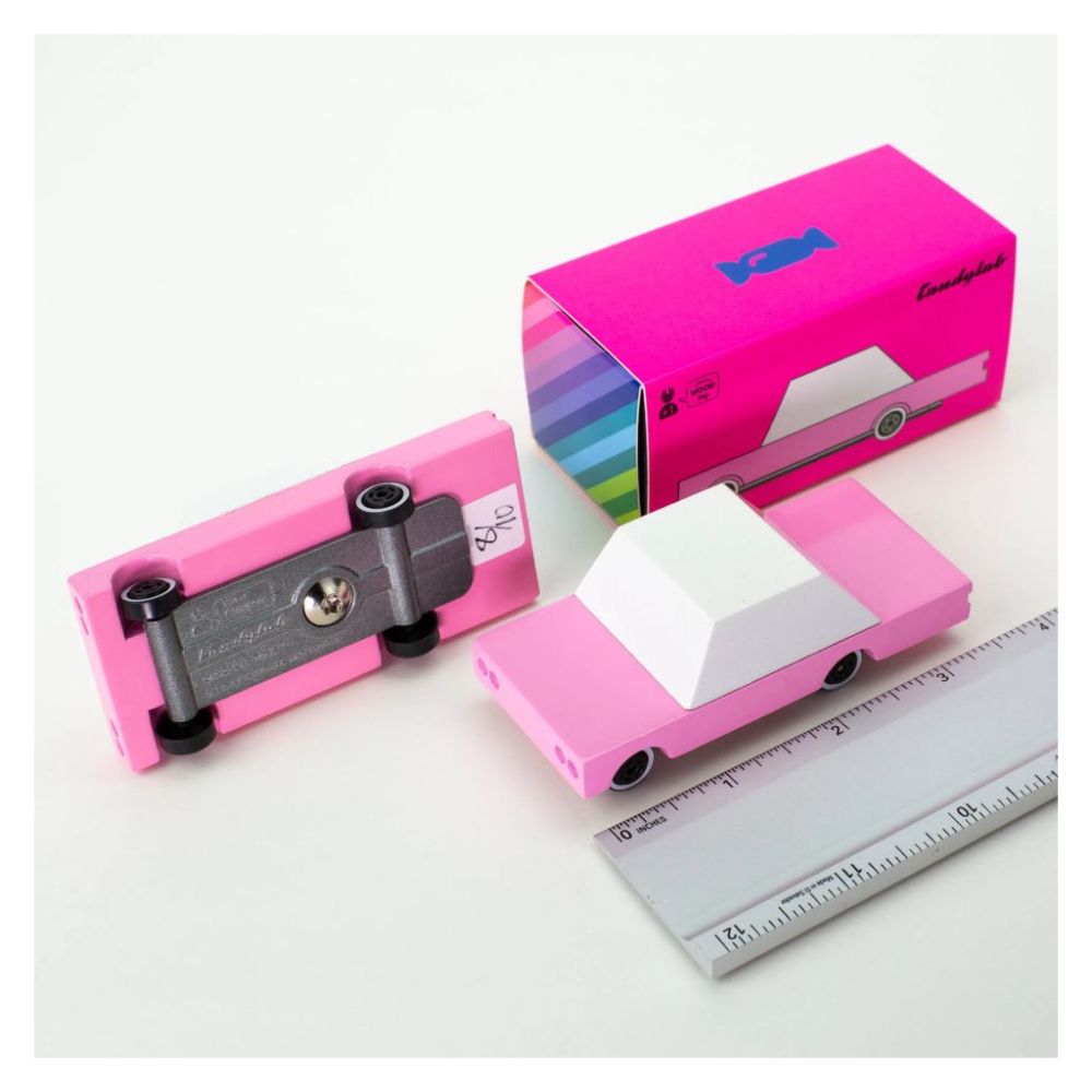 - Candycar Pink Sedan este o fantastica masinuta de jucarie in miniatura din lemn, o interpretare moderna fantezista a unei masini clasice vintage pline de culoare, perfecta pentru parintii minimalisti care isi doresc jucarii rezistente, durabile in timp si non-toxice pentru copii lor, cat si pentru colectionarii iubitori de masini clasice.