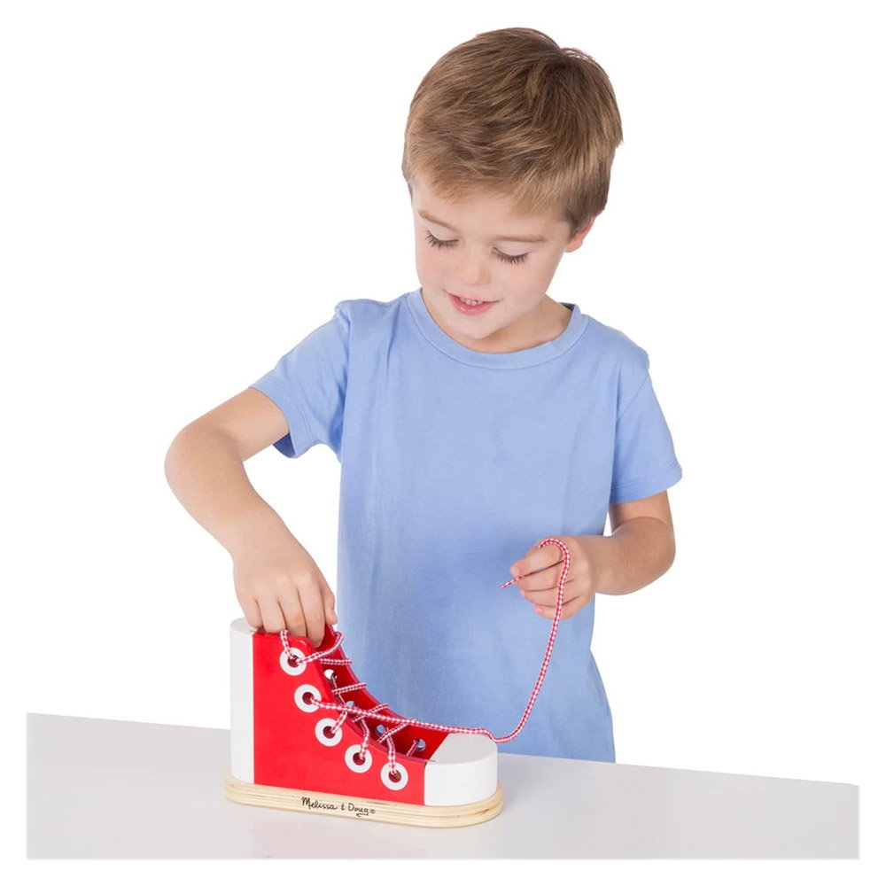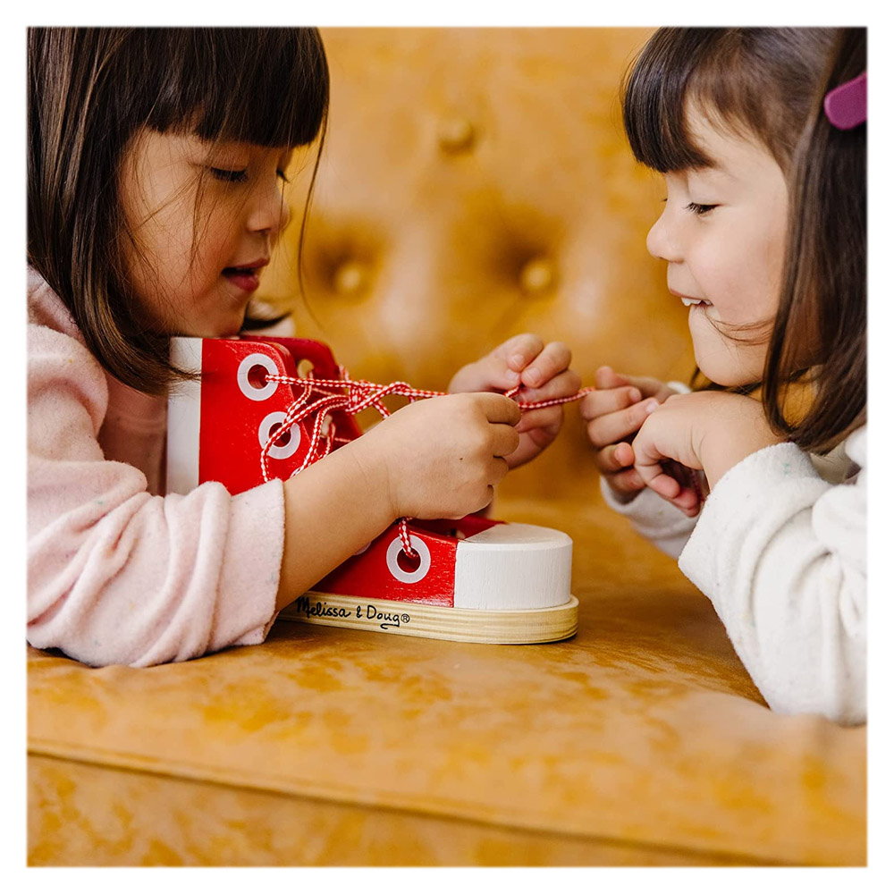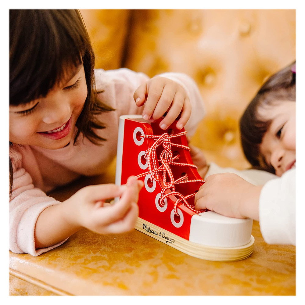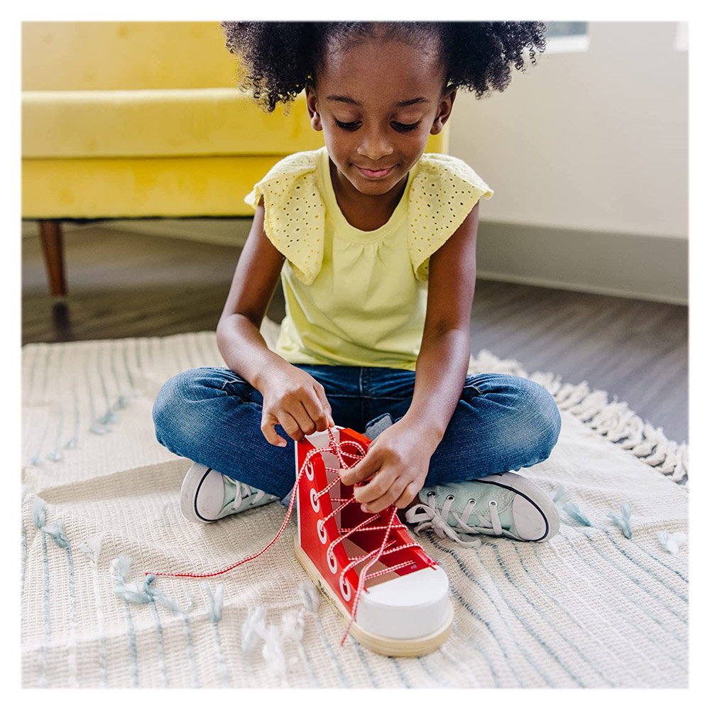- Jucandu-se cu acest pantof din lemn, copiii vor invata cu rapiditate cum sa isi lege pantofii, putand in scurt timp sa reuseasca singuri sa faca aceasta activitate si sa devina astfel independenti din acest punct de vedere.
