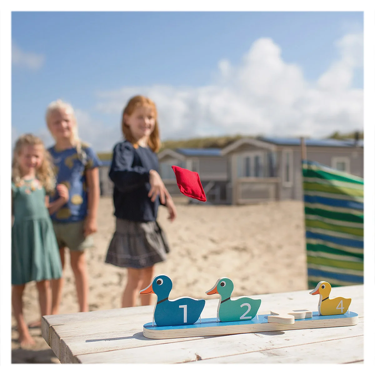 - Cele patru rate s-au aliniat pe un rand. Tinteste si incearca sa le dobori cu saculetii cu nisip!