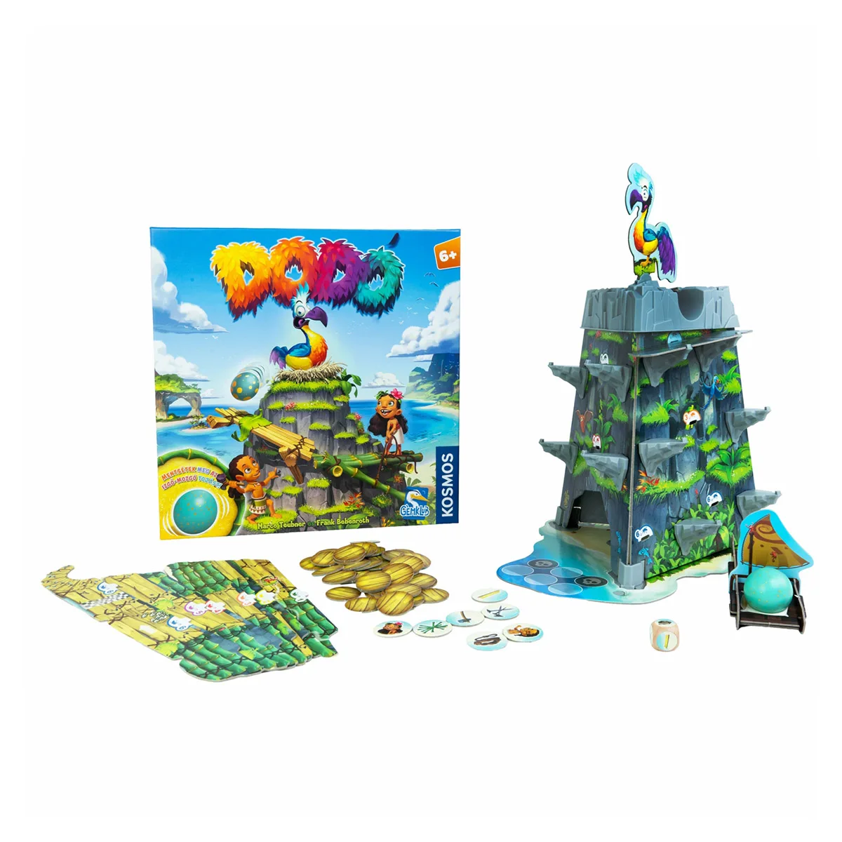 - 1 hegy, 1 Dodó, 1 izgő-mozgó tojás, 6 híd, 1 sziklaperem, 1 csónak, 58 építőanyag-lapka, 1 dobókocka, 1 játékszabály és egy összeszerelési útmutató.