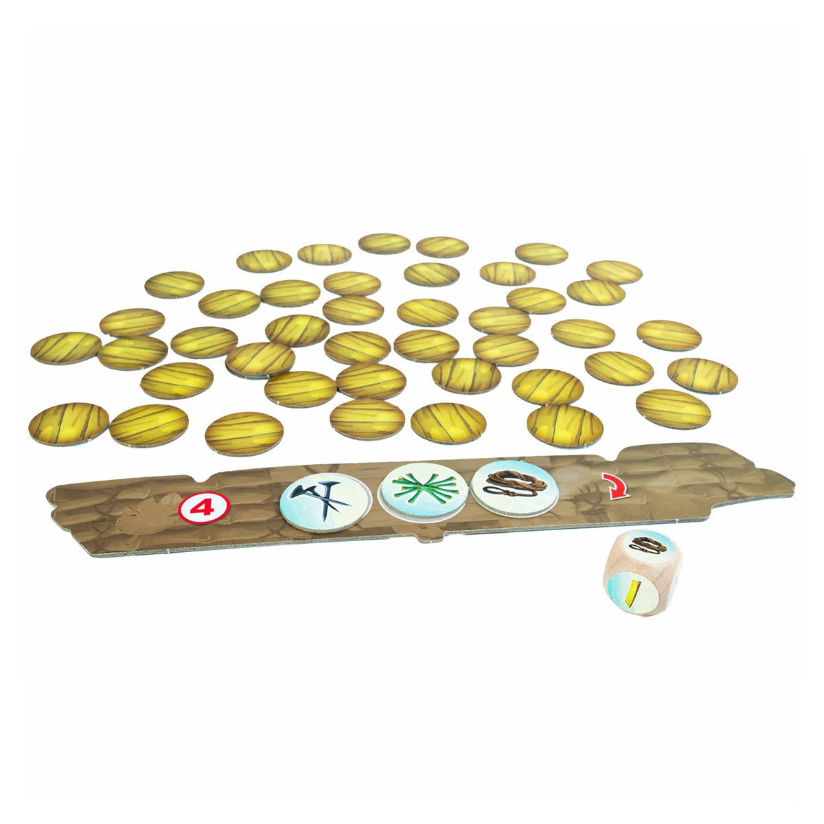 A játékos felfordít egy lapkát, és megpróbálja megtalálni a szükséges eszközöket (például bambusz, kötél vagy szerszám).