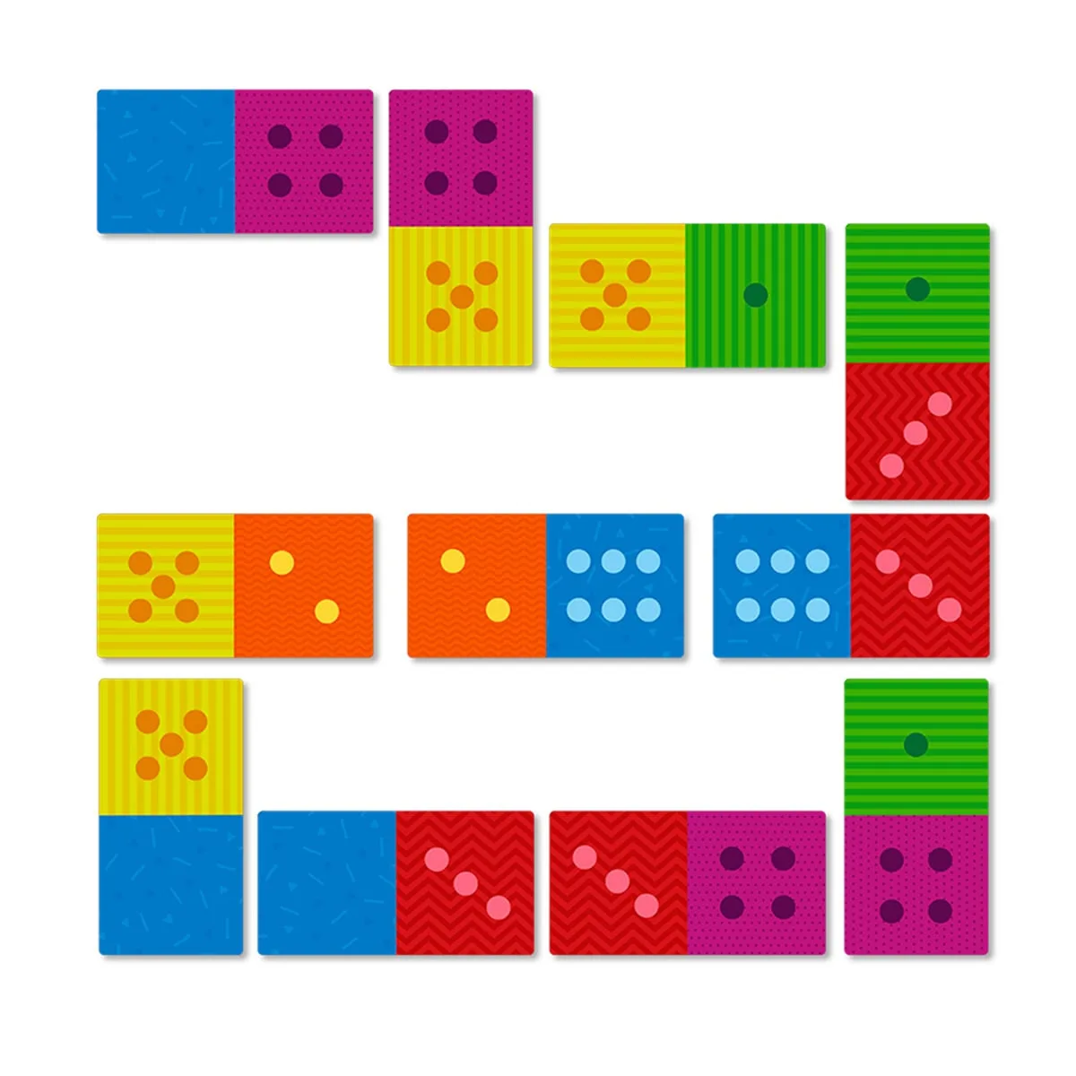 - Jocul contine 28 de piese de domino viu colorate, realizate din caron rezistent.