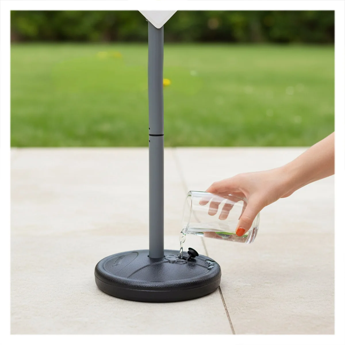 - Pentru o stabilitate suplimentară, bazele negre pot fi umplute cu apă sau nisip