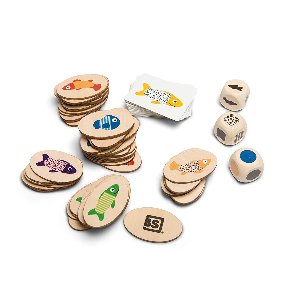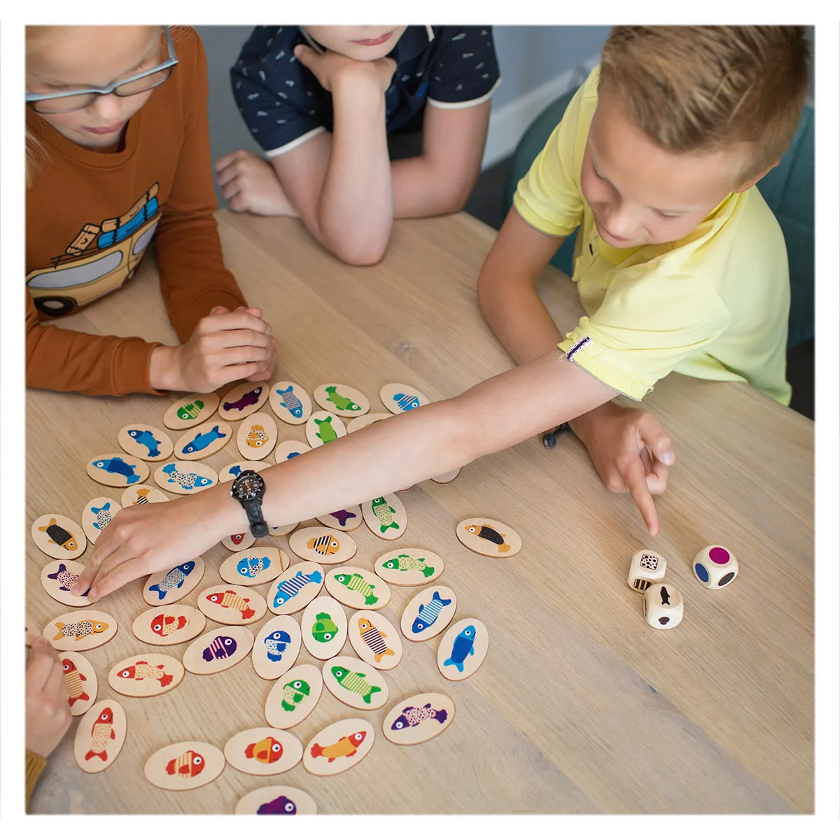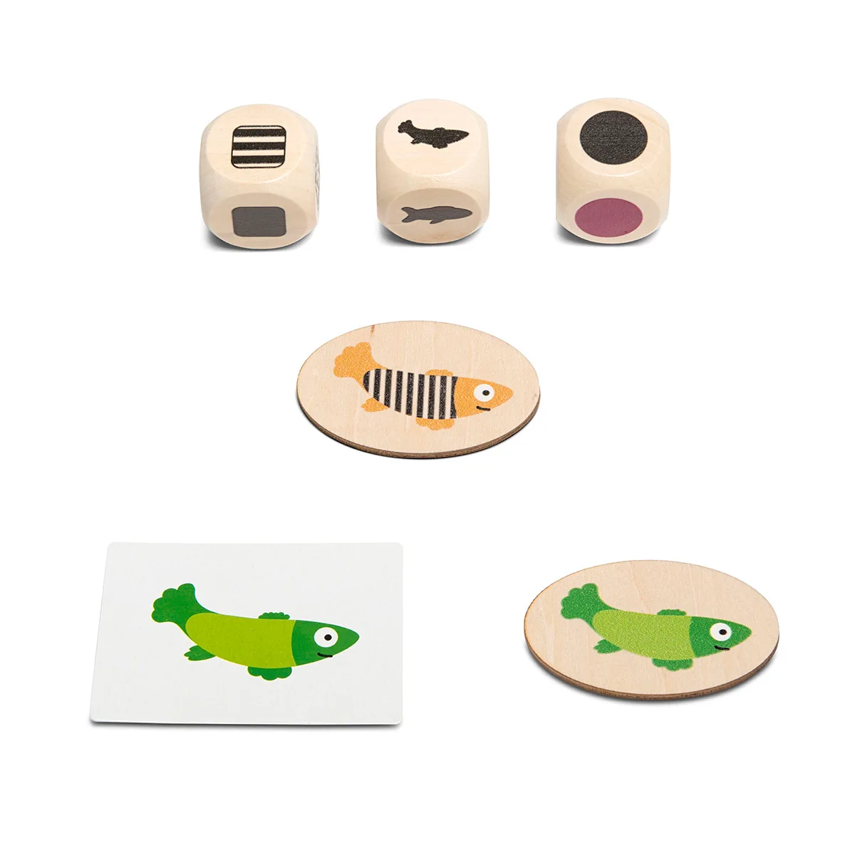 - Arunca cele trei zaruri! Gaseste primul pestele in forma, culoarea si modelul indicat de zaruri! Daca ai reusit, vei primi cardul cu pestele.