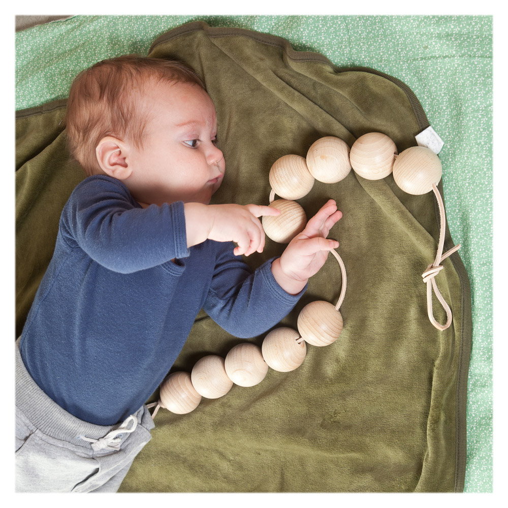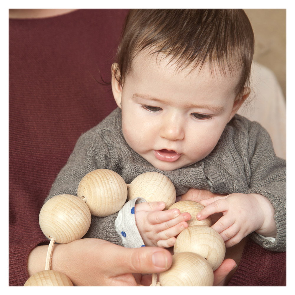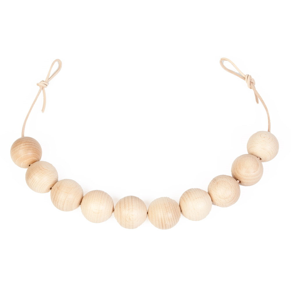 - Cei mici se vor bucura sa prinda in manute, sa atinga si sa simta aceasta ghirlanda cu bile mari din lemn!