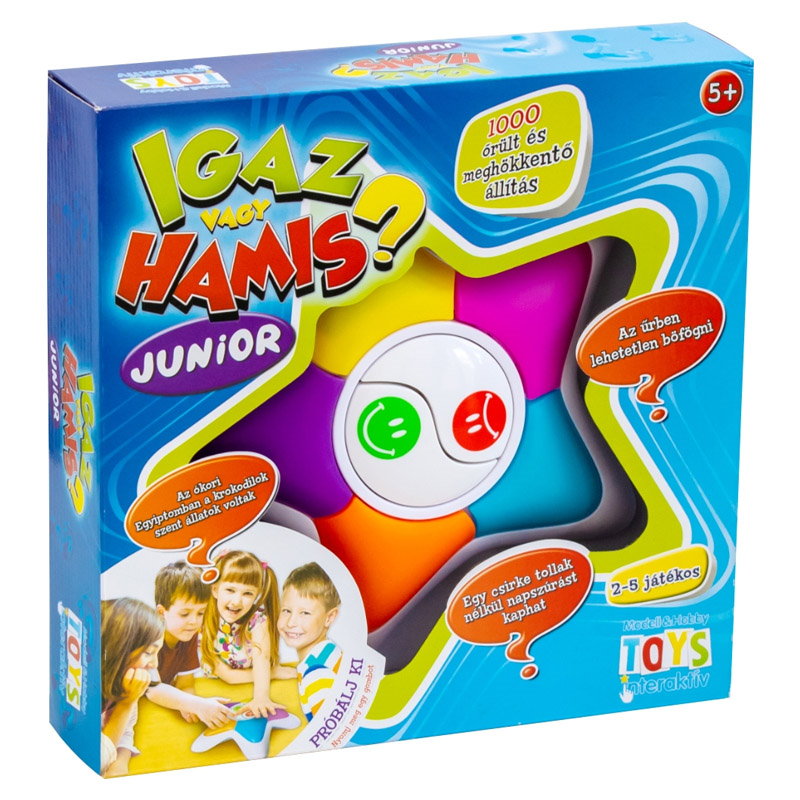 - Az Igaz vagy Hamis? Junior társasjáték 1000 elképesztő állítással és maximum 5 játékos játszhatja.