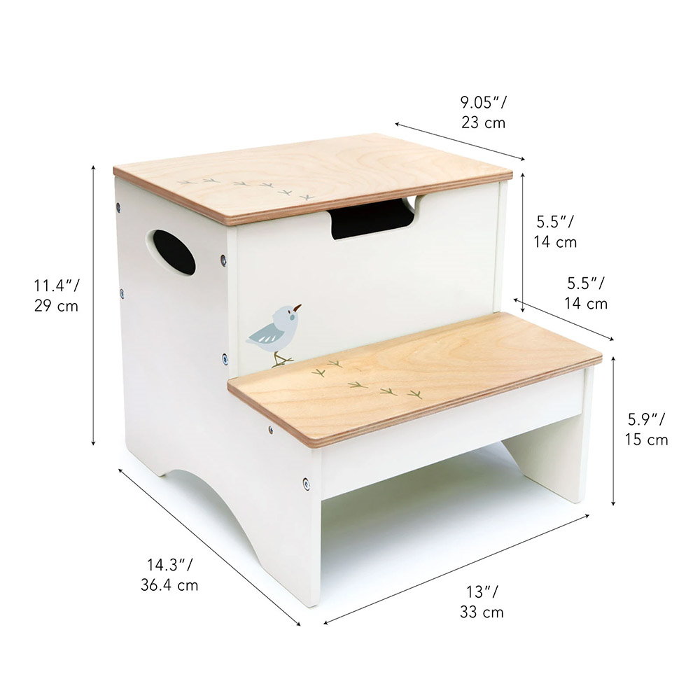 - Inaltatorul din lemn este prevazut cu doua trepte si poate fi utilizat de catre copii pentru a ajunge cu usurinta la chiuveta, la raftul cu cartile preferate sau la obiectele si locurile inaccesibile aflate la inaltime, ca scaunel pentru a se odihni sau ca spatiu de depozitare pentru jucarii, dupa o zi lunga de joaca.