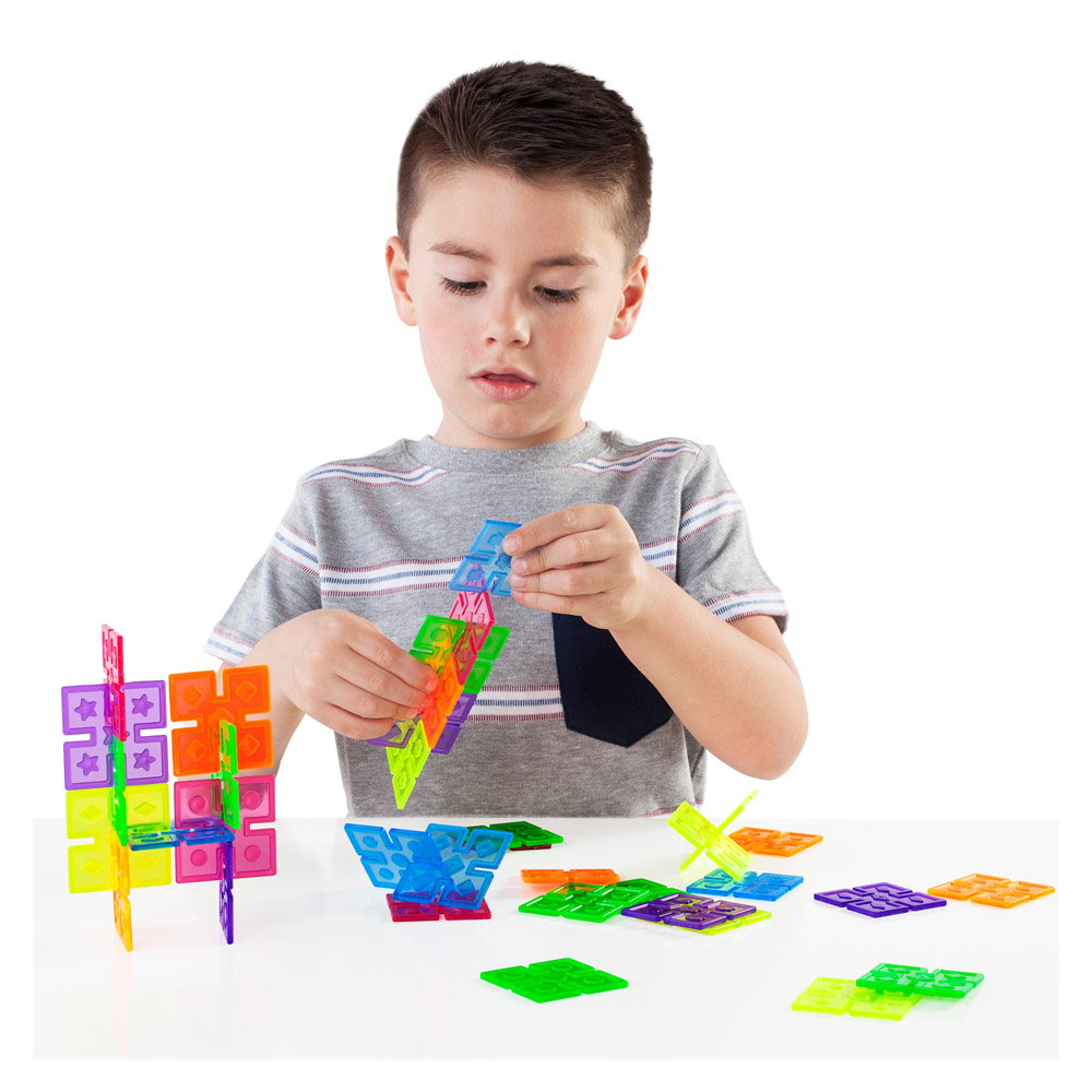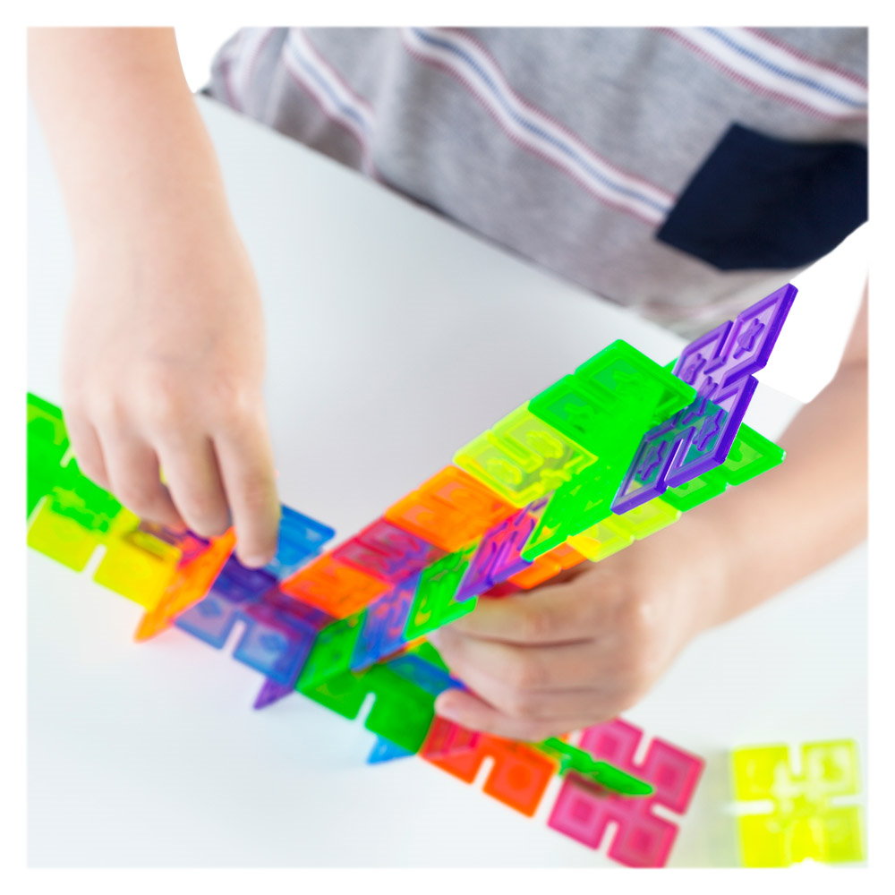 - Patratele sunt realizate din plastic colorat, translucid, cu crestaturi pentru o constructie flexibila.