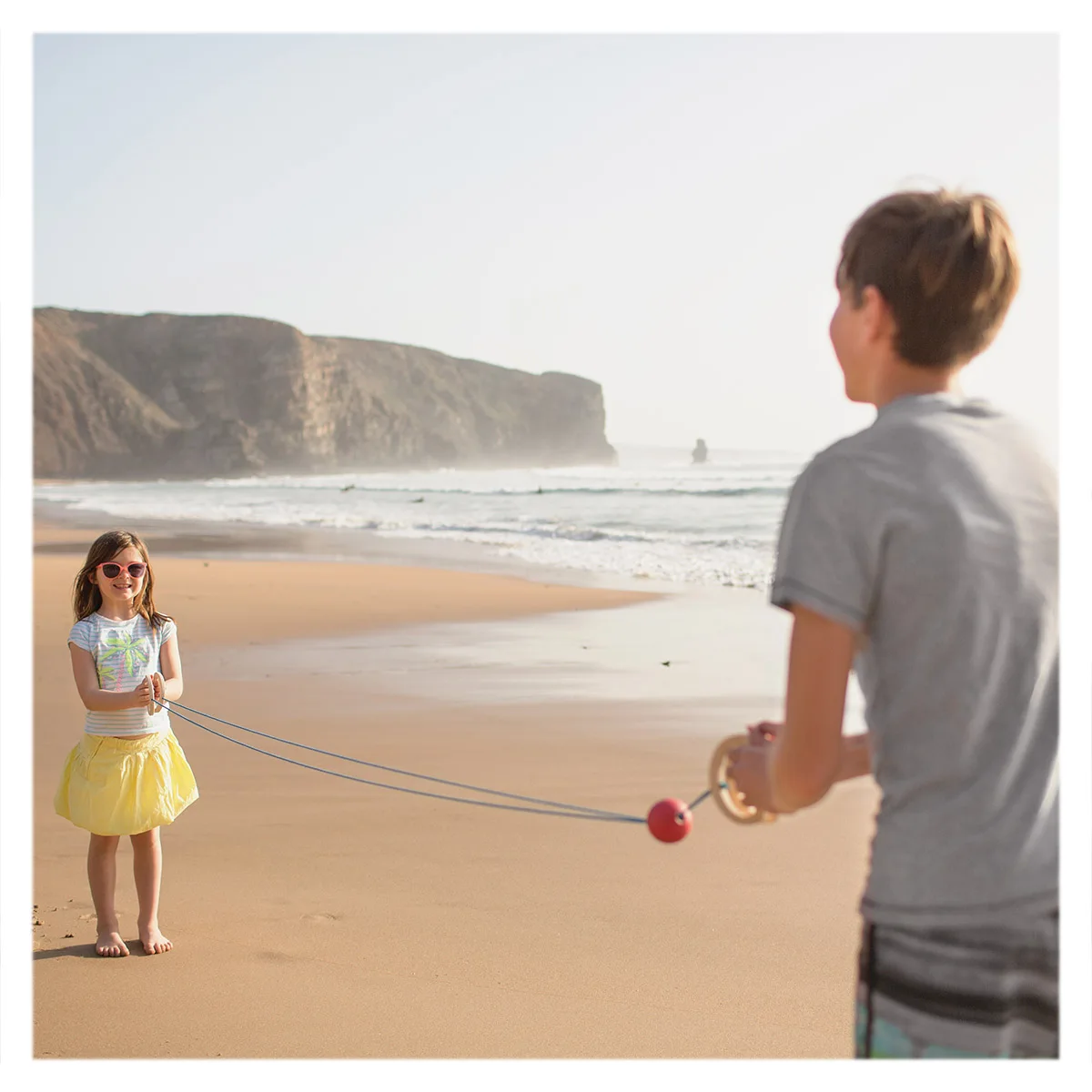 - Cei doi jucatori vor incerca sa tina mingea in miscare rapida dintr-o parte in alta, de-a lungul franghiei. Mingea aluneca de-a lungul sforii atunci cand se departeaza bratele.