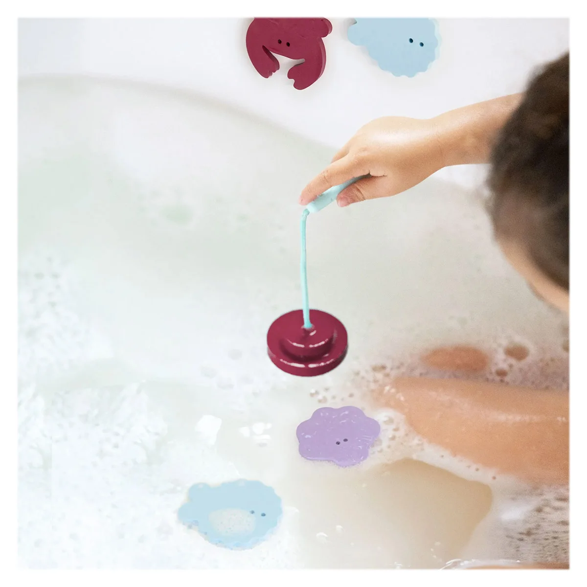 Materialele sunt sigure pentru copii și nu conțin substanțe nocive precum BPA, latex sau ftalați. După utilizare, piesele pot fi clătite și lăsate la uscat, fiind concepute pentru utilizare repetată în baie.