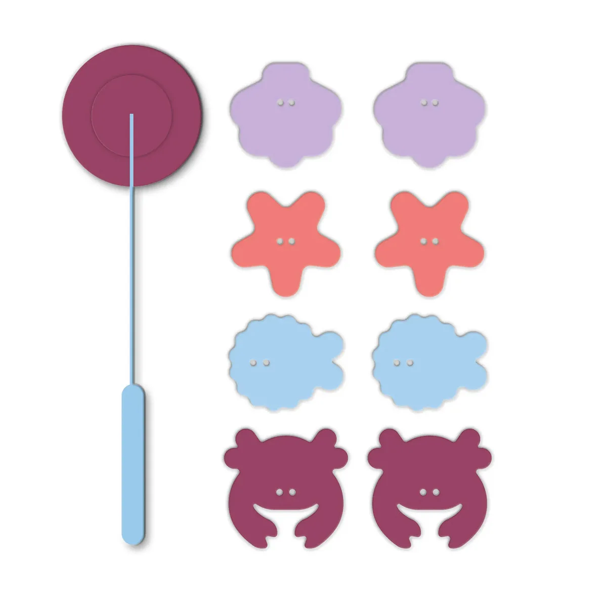 Figurinele sunt realizate din spumă EVA de înaltă calitate, care plutește pe apă și aderă ușor pe suprafețe umede precum faianța sau cada. Astfel, copiii pot combina jocul de pescuit cu jocul creativ de construcție și decorare.