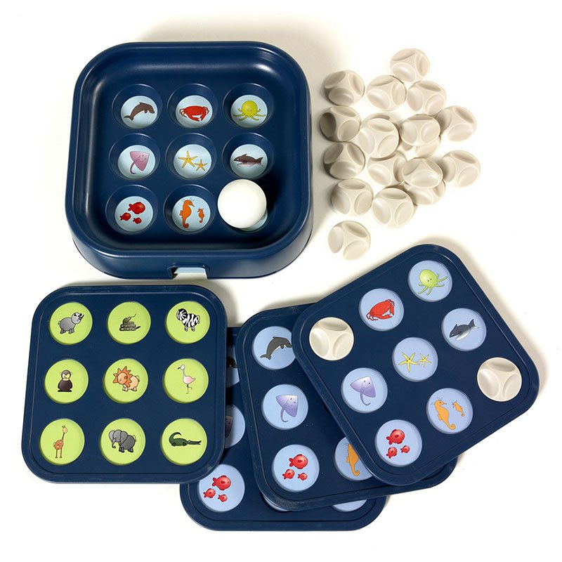 - Contine: rama din plastic, placa pentru placute cu imaginile animalelor pe ambele parti, 4 placi lotto cu imaginile animalelor pe ambele parti si 36 jetoane de joc.