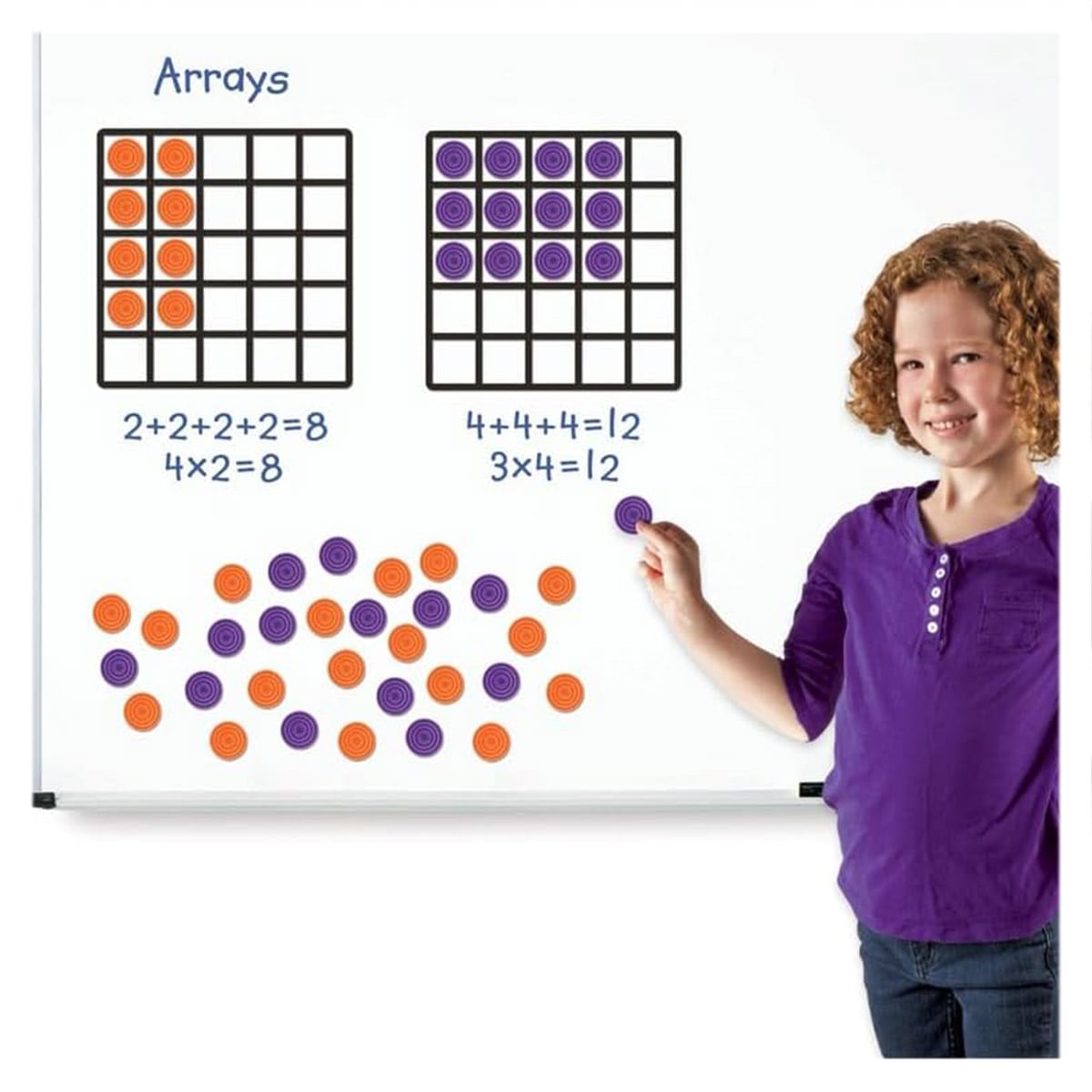 - Jocul magnetic gigant – Invat Matematica de la Learning Resources este un material didactic inovator care ii ajuta pe copii sa inteleaga concepte matematice esentiale precum inmultirea ca adunare repetata, impartirea ca scadere repetata, formarea de multimi egale, numararea, gruparea si sortarea numerelor – toate printr-un mod interactiv si vizual.