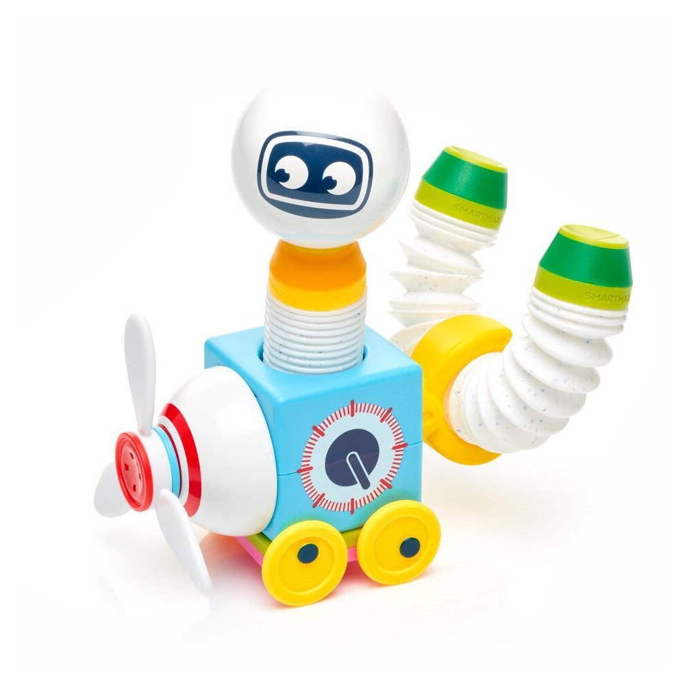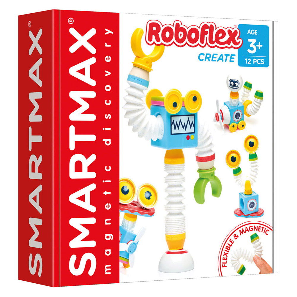 - SmartMax Roboflex contine 12 piese magnetice pe care copiii le pot combina pentru a construi cei mai simpatici robotei, dupa propria imaginatie sau urmand modelele din posterul cu exemple din interiorul setului.