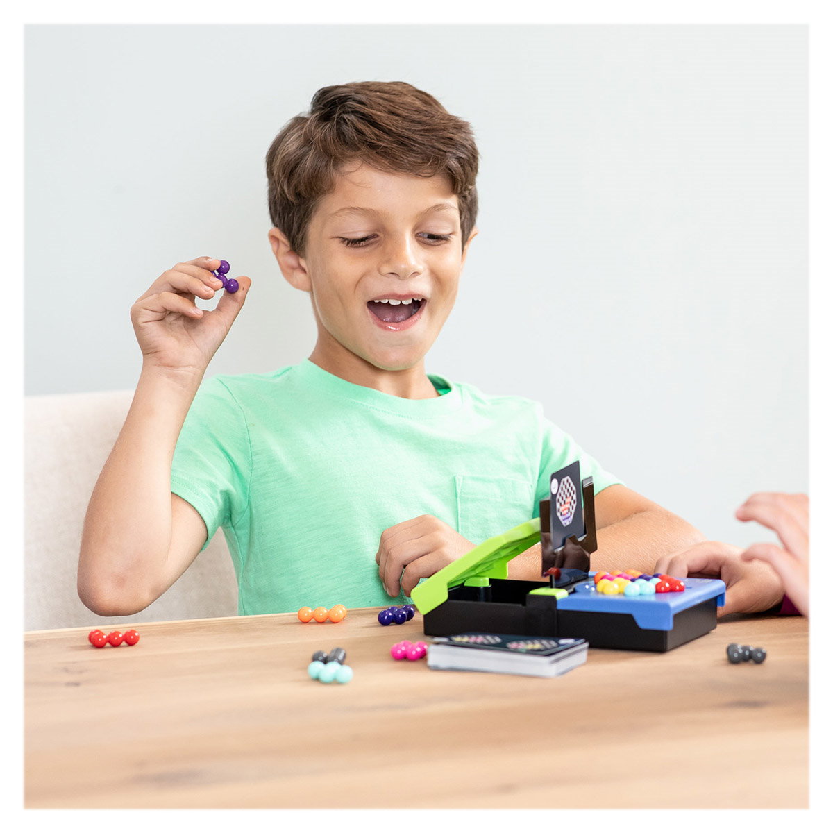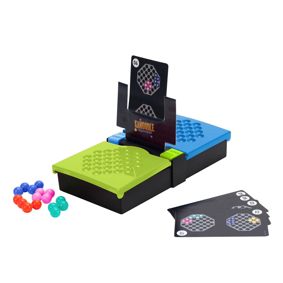 5. Primul jucator care a finalizat provocarea apasa butonul Kanoodle pentru a arunca piesele adversarului in aer!