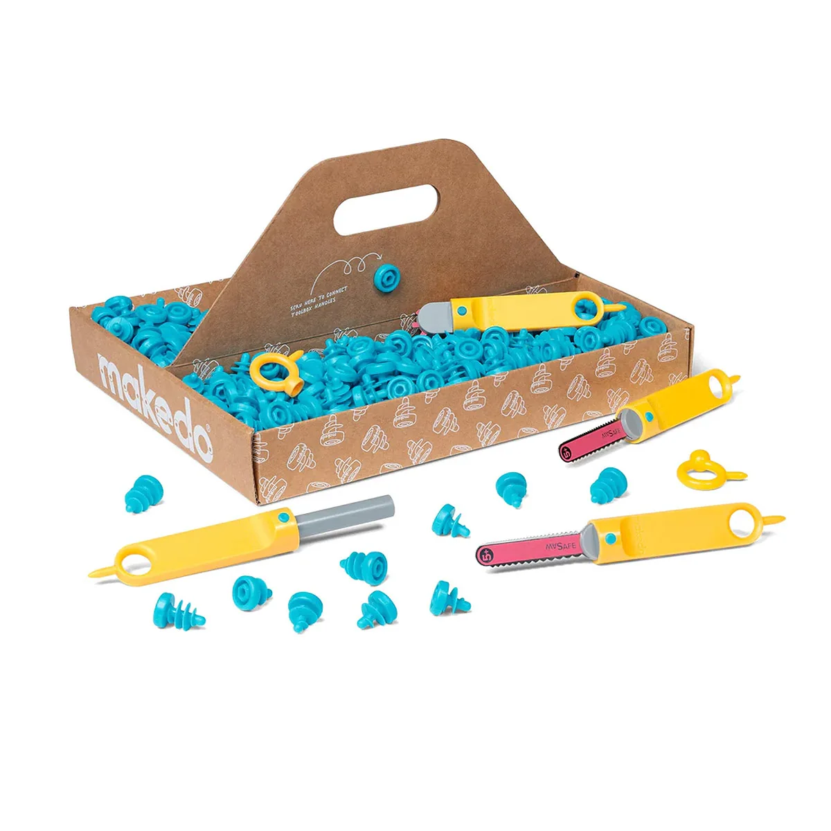 Makedo Discover le oferă copiilor libertatea de a transforma cutiile din carton în creații spectaculoase. Cu ajutorul sistemului ingenios de conectare Scru și al instrumentelor speciale, piesele din carton pot fi tăiate și îmbinate rapid, fără lipici sau bandă adezivă.