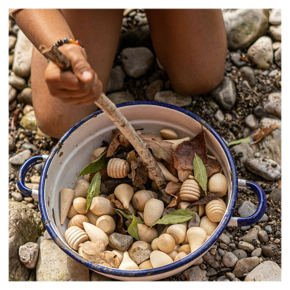 - Acest set mixt de mandale din lemn natur include toate formele tale preferate de piese de mandale Grapat: conuri, picaturi, petale, pietricele, fagure, ciuperca, oua si multe altele, fiind o completare minunata la colectia ta de piese libere.