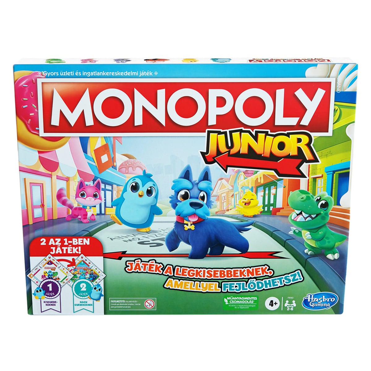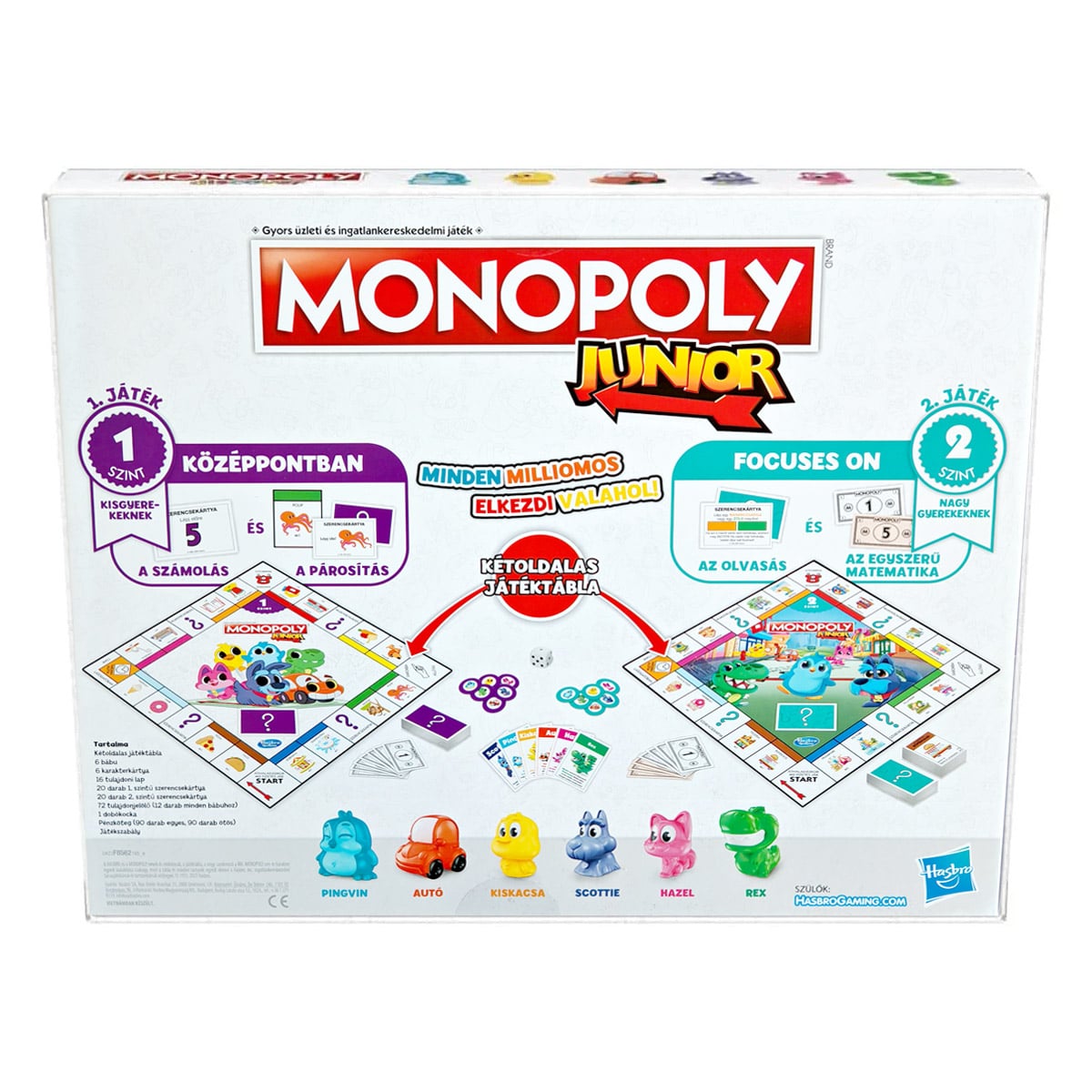 - Az egyszerű játékmenetnek, édes figuráknak és a gyerekbarát helyszíneknek köszönhetően ez a társasjáték ideális bevezető a Monopoly játékok világába.