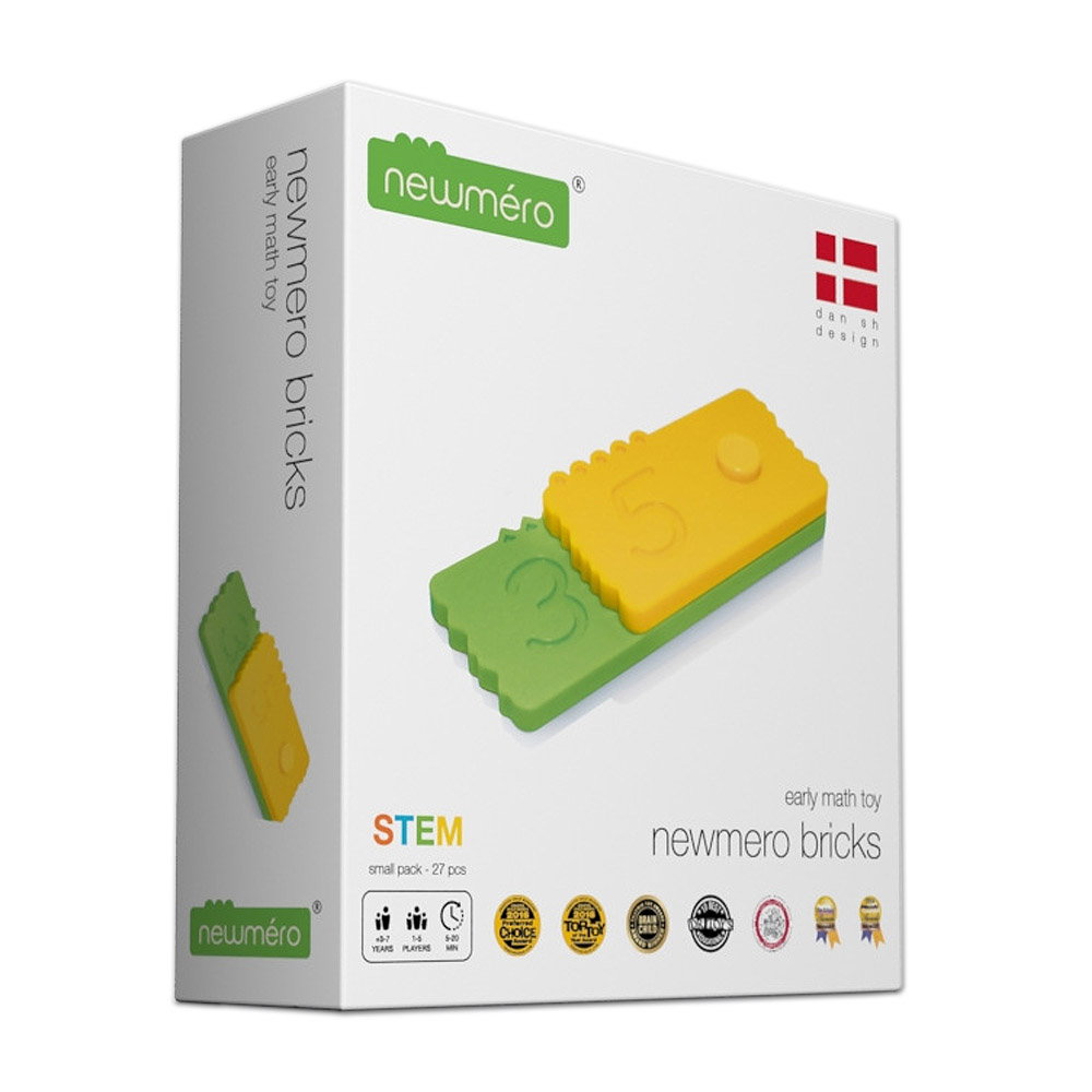 - Setul Newmero Start Pack contine 27 de caramizi din plastic de inalta calitate in doua culori diferite: 2 seturi de caramizi galbene (UNITATI: numerele 1-9), 1 set de caramizi verzi (ZECI: numerele 10, 20, 30, 40, 50, 60, 70, 80, 90), un saculet din bumbac cu snur pentru depozitare si transport, o brosura cu instructiuni, exercitii si exemple de activitati in mai multe limbi.