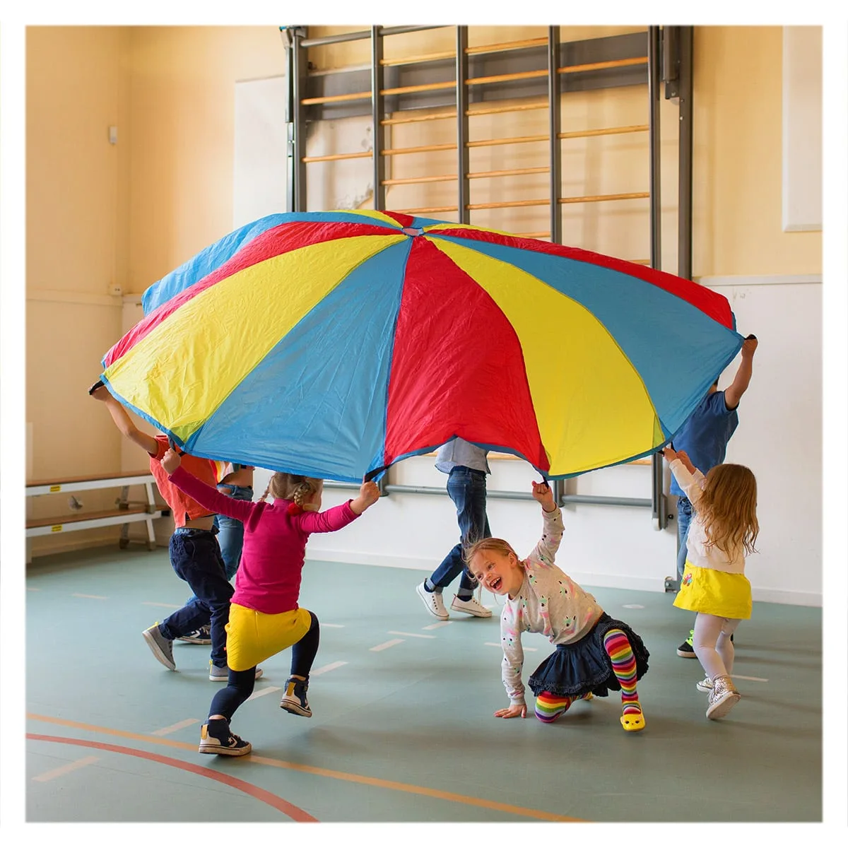 - Parasuta de joaca reprezinta o modalitate minunata pentru dezvoltarea musculaturii, motricitatii si coordonarii fizice de baza a copiilor, jocul cu aceasta asigurand exercitii fizice pentru intregul corp.