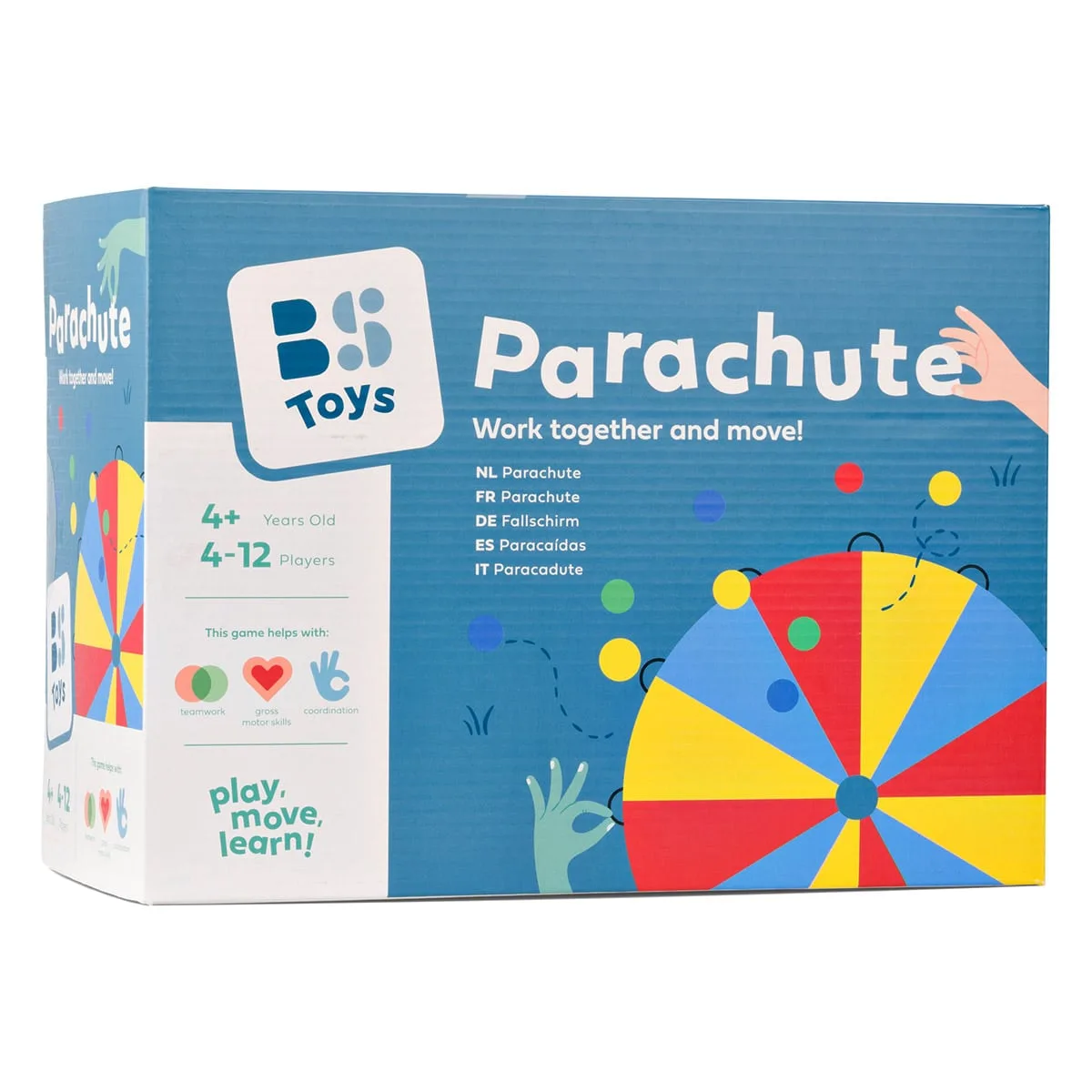 - Aceasta parasuta de joaca promoveaza jocul activ, distractia si cooperarea intre prieteni.