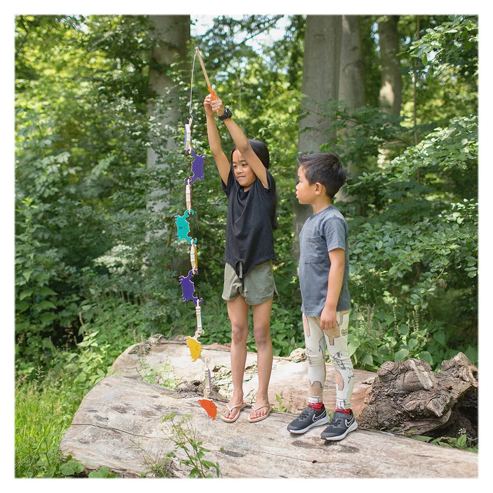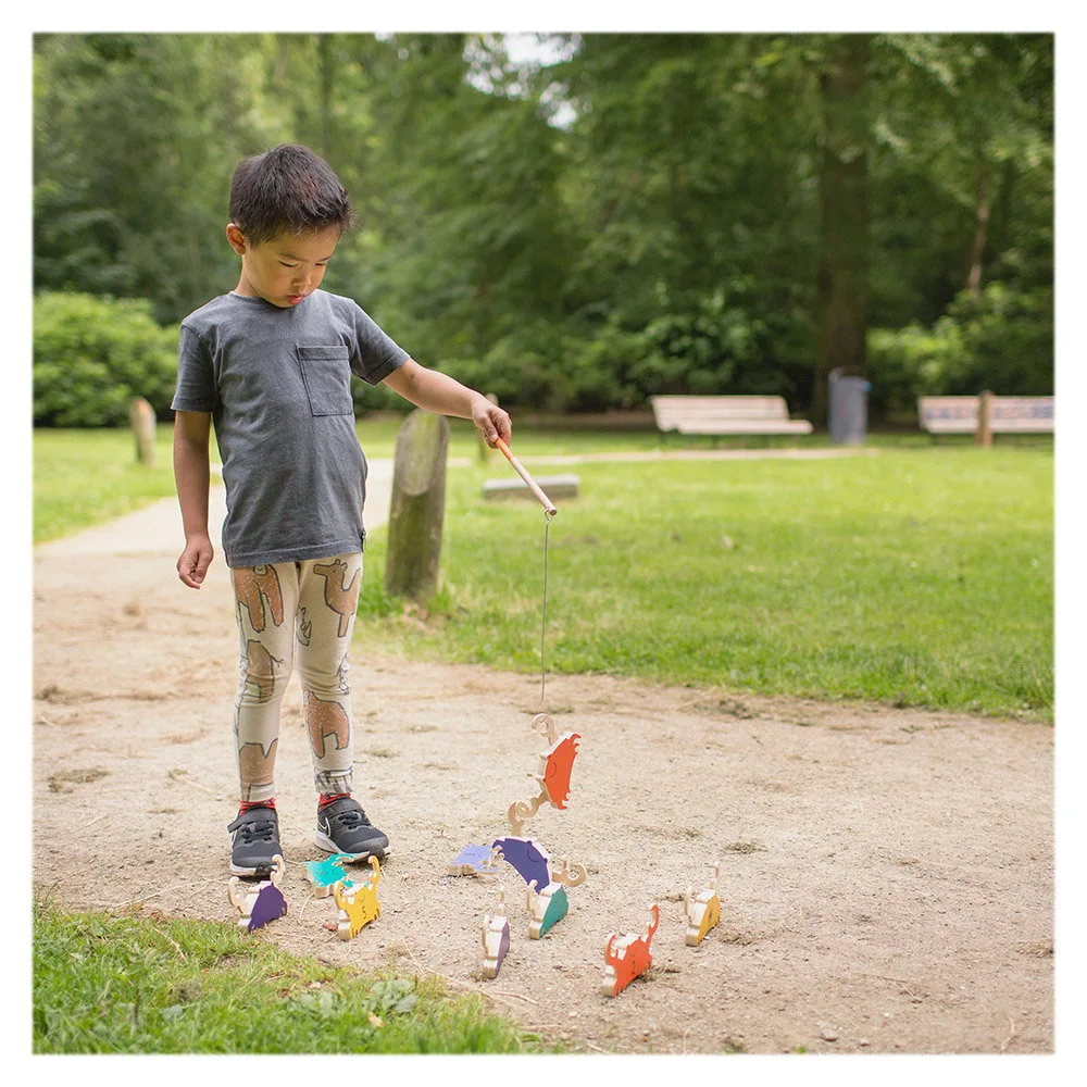 - Jocul contine: 10 crabi din placaj de lemn, colorati si numerotati, 2 undite alcatuite dintr-un bat de lemn si o tija metalica.