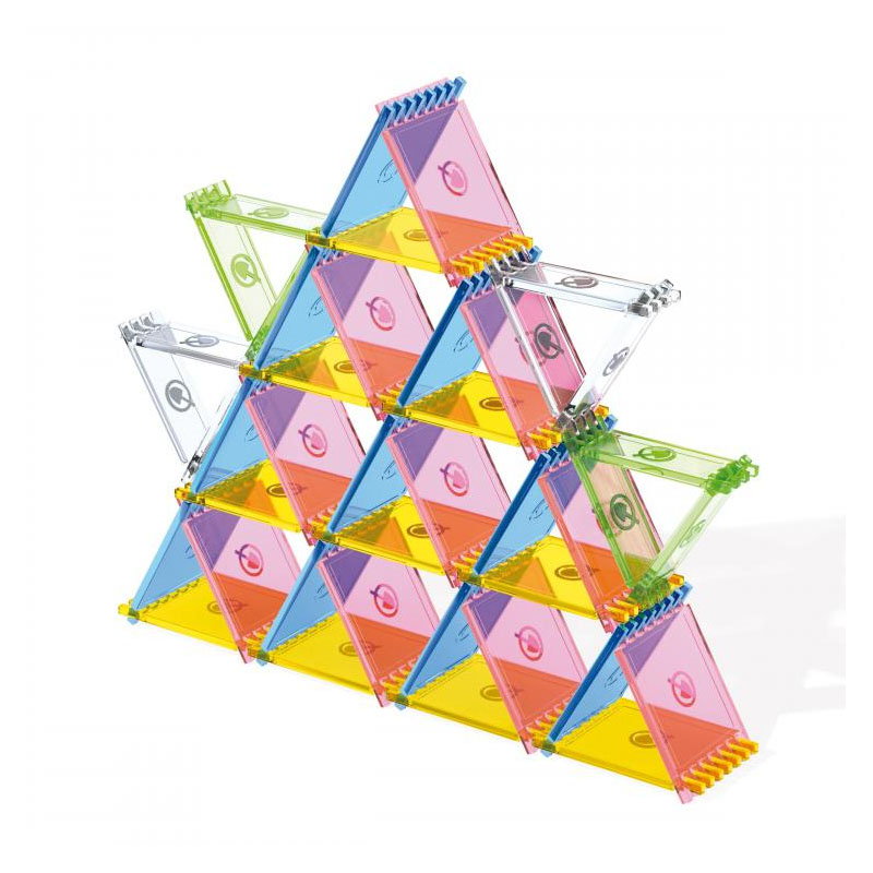- Cu ajutorul celor 60 de placute din plastic copiii pot construi orice casuta sau castel magic, pe care il apoi il pot transporta si aseza oriunde, fara riscul de a se desface ca un castel din carti de joc.