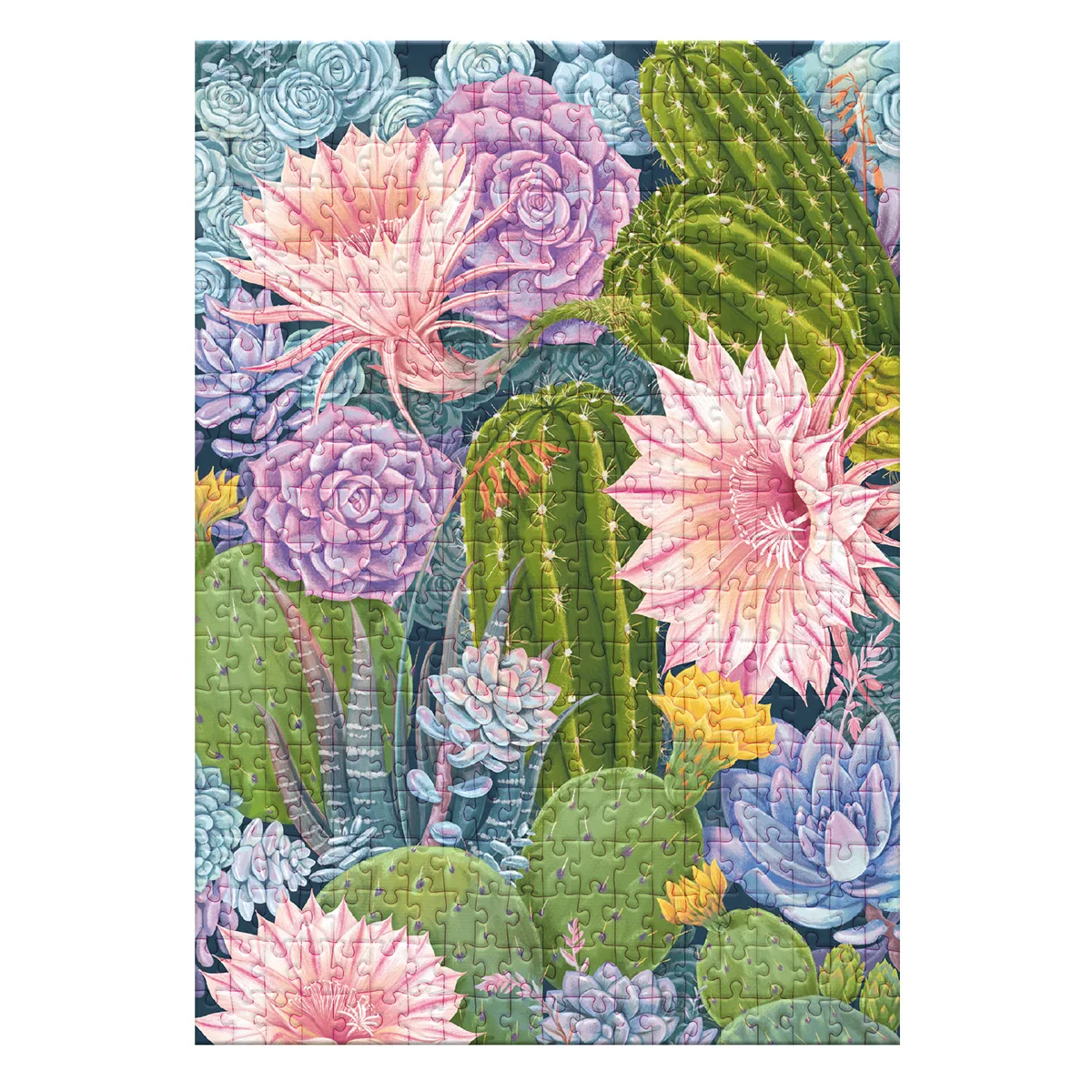 • Puzzle educativ cu tematica botanica, reprezentand cactusi infloriti si plante suculentele intr-un design plin de culori si detalii incantatoare