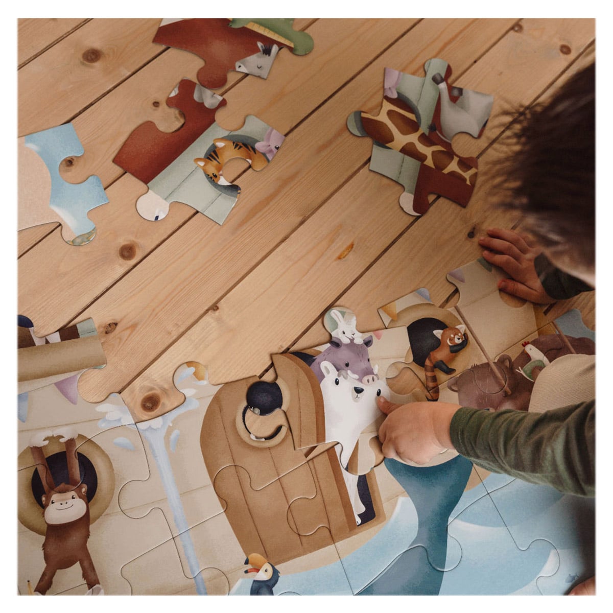 - Toata lumea la bord! Porneste intr-o aventura captivata cu acest puzzle mare de podea cu Arca lui Noe de la Little Dutch!