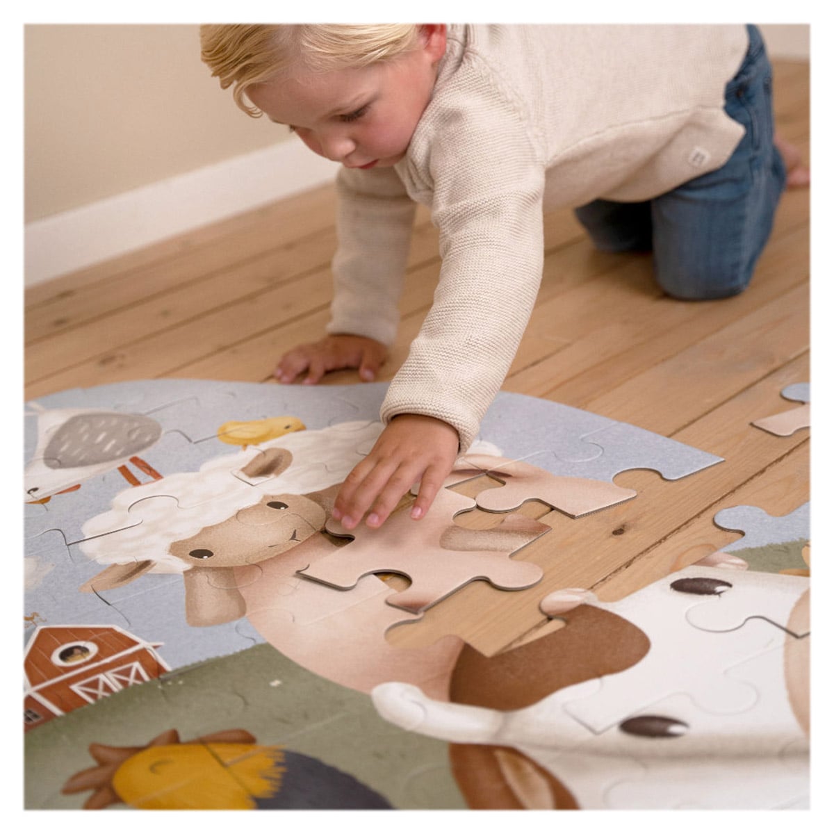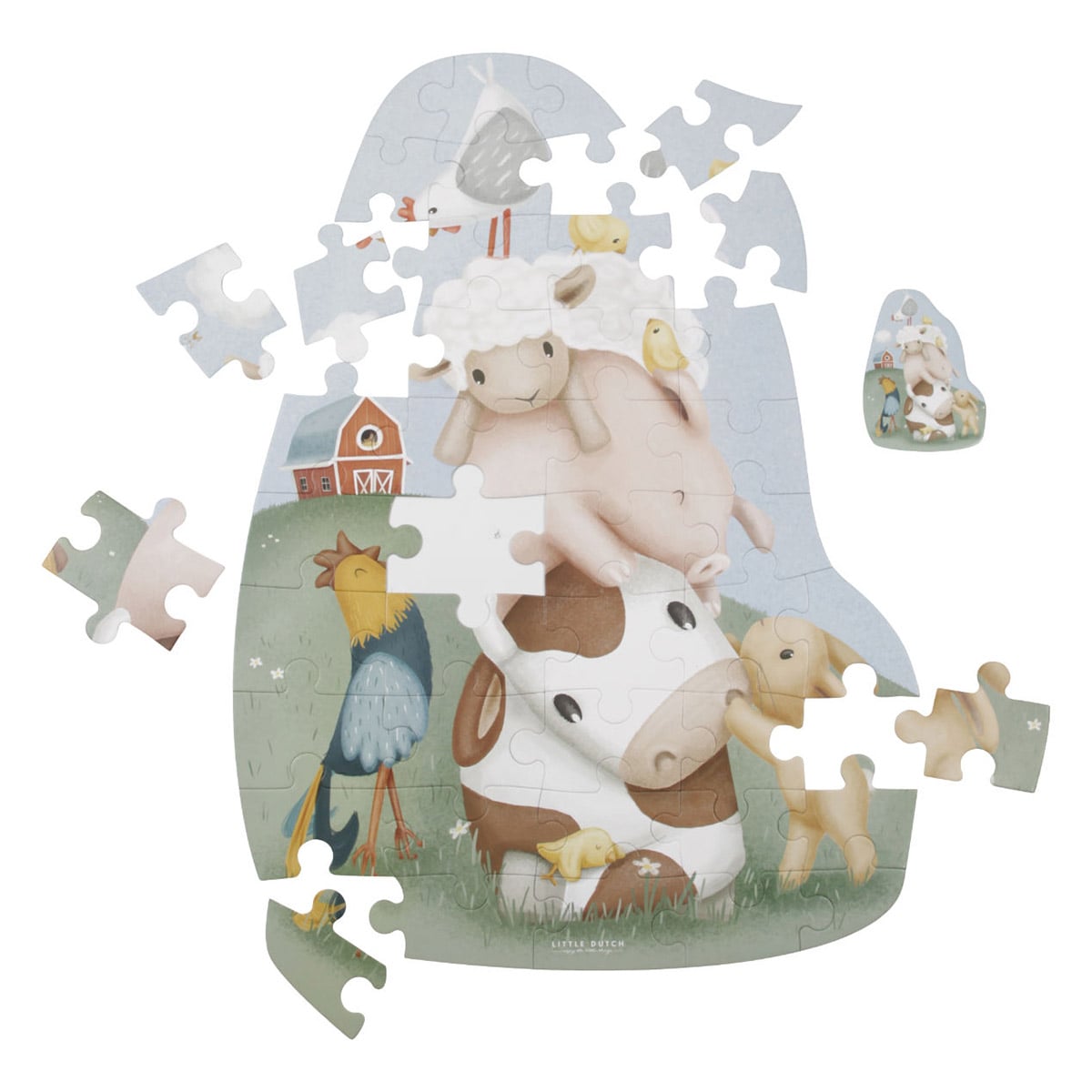 - Descopera simpaticii prieteni de la ferma din colectia Little Farm de la Little Dutch, cu acest puzzle gigant de podea cu 42 de piese mari de carton!