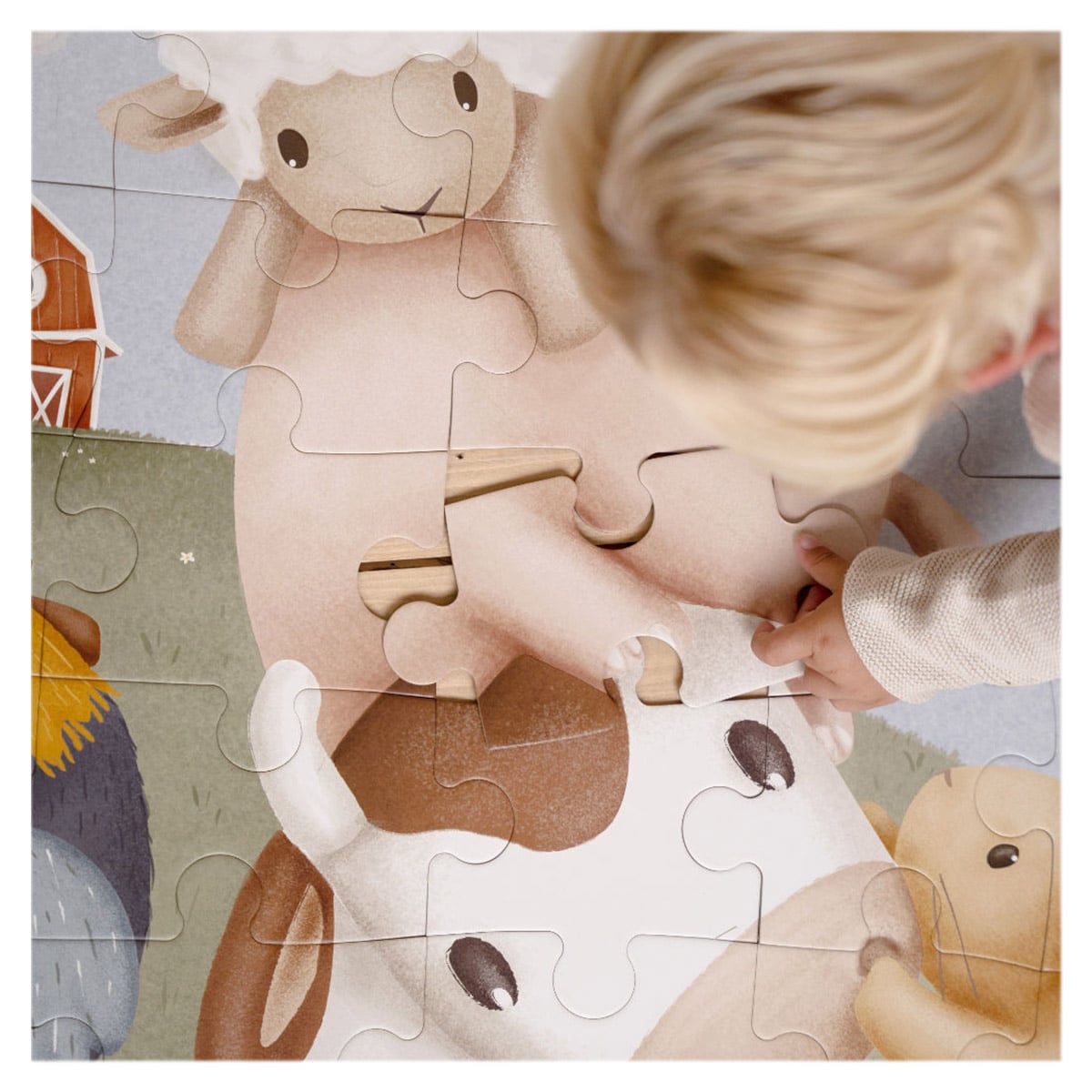 - Odata ce piesele sunt asezate la locul lor, puzzle-ul va dezvalui o imagine distractiva din gospodaria de la ferma, incurajand jocul imaginar si explorarea.