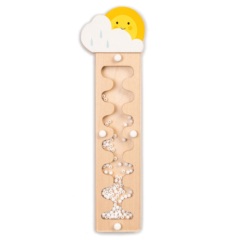 - Copiii vor iubi sa scuture jucaria pentru a crea sunete minunate, sa urmareasca margelele care cad in cascada si sa asculte sunetul ploii.