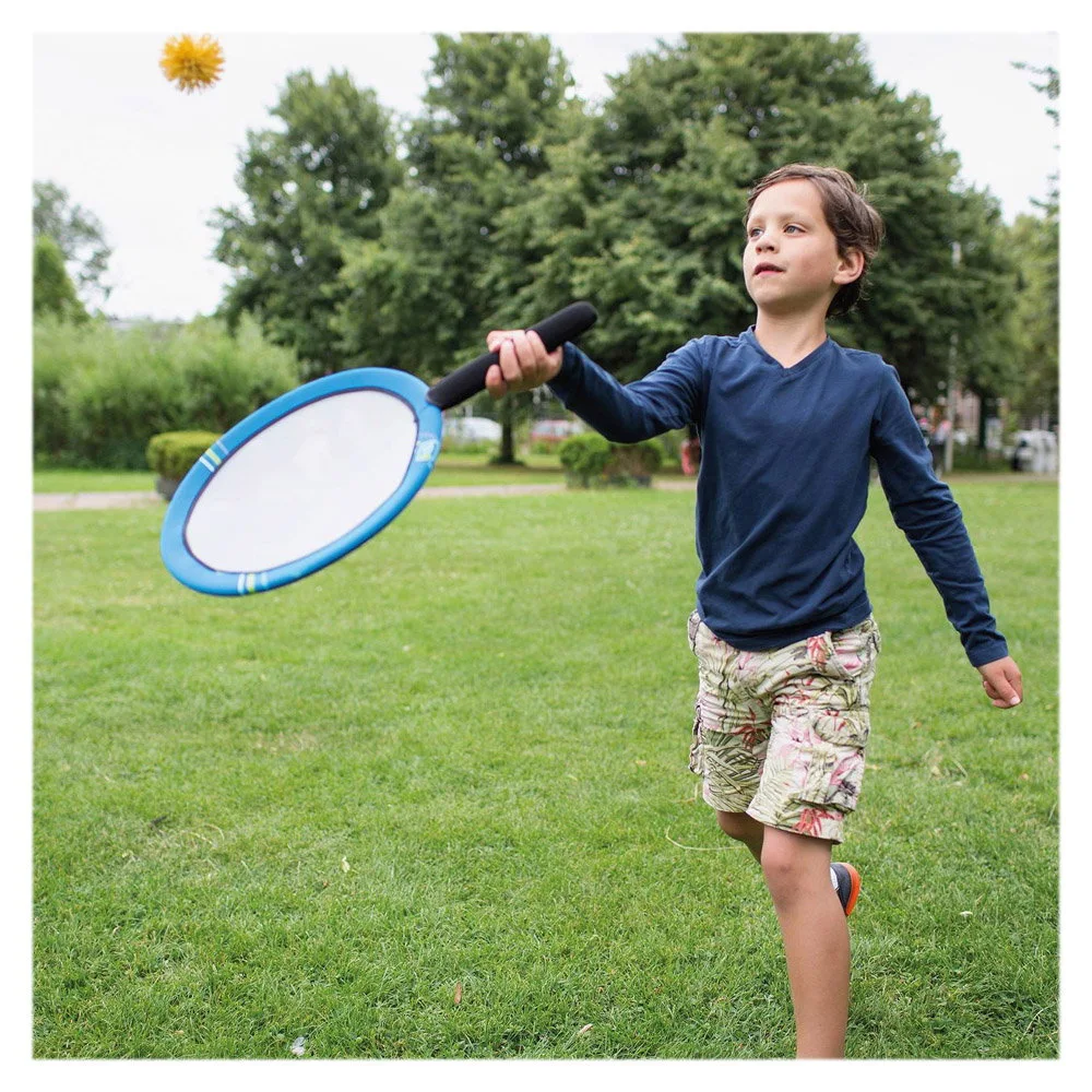 • Datorita rachetelor elastice si mingilor pufoase din fire moi de cauciuc se poate juca in siguranta, fara a lovi pe nimeni. Daca mingea loveste accidental o fereastra, nu va provoca daune.