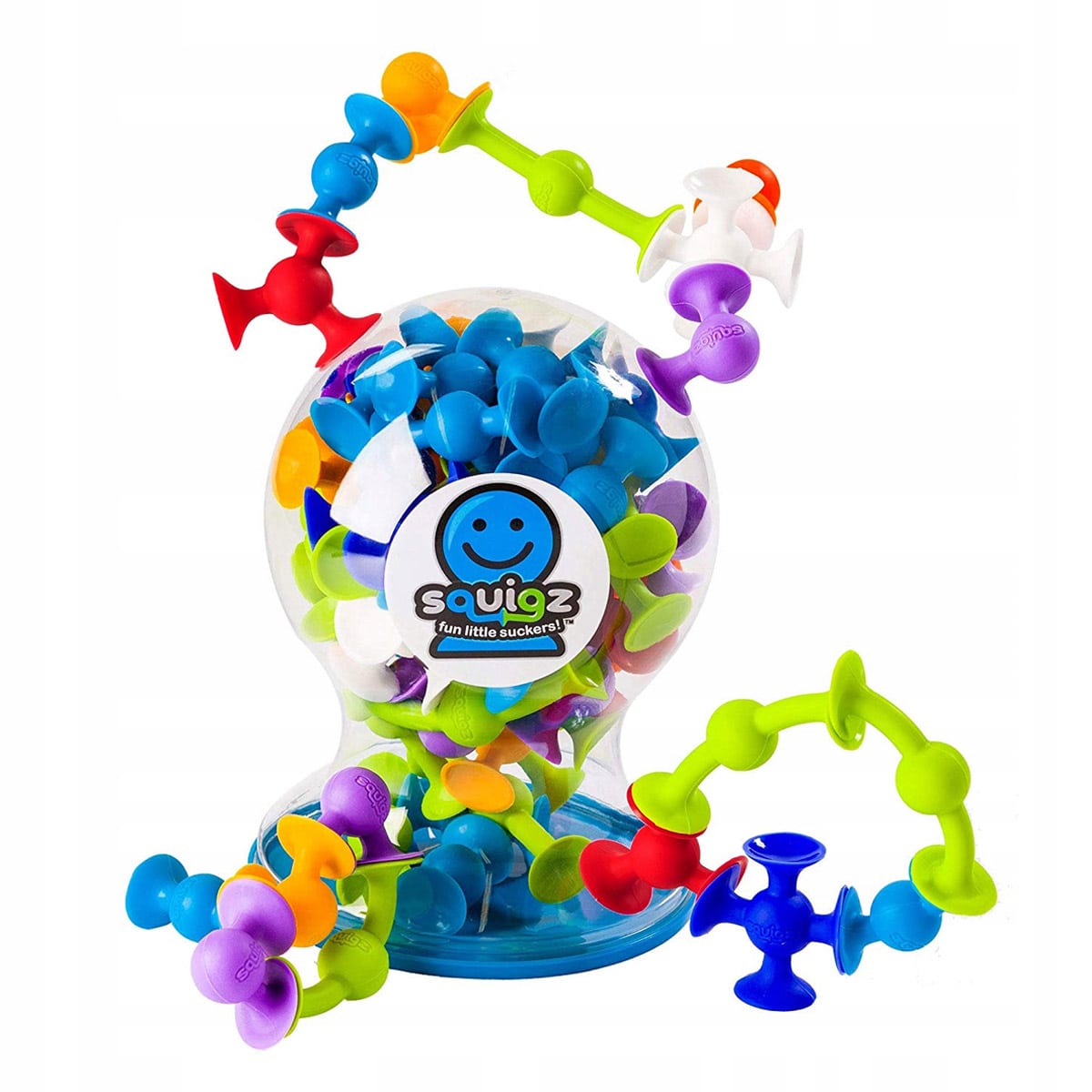 - Squigz sunt forme colorate din silicon, mici si distractive, prevazute cu brate cu ventuze, care vor captiva imediat atentia celor mici cu aspectul lor interesant si ii vor tine ocupati timp indelungat.