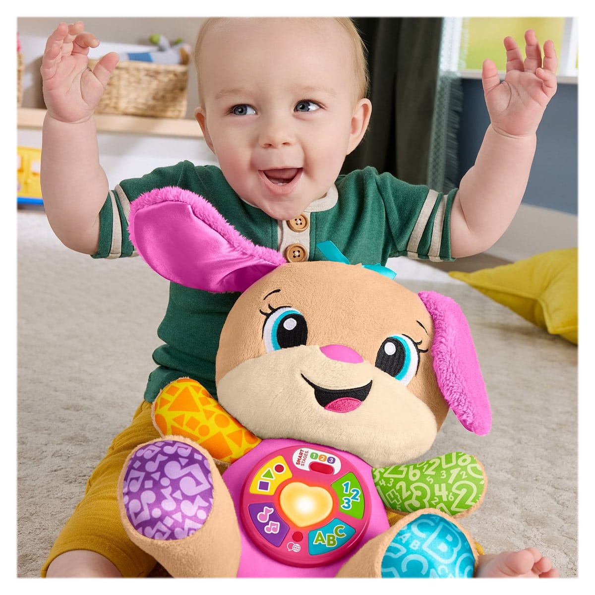 - A Fisher-Price Tanuló kutyushugi több közösen énekelhető dallal szórakoztatja a picit, a játék ölelgethető, puha töltéssel készült.
