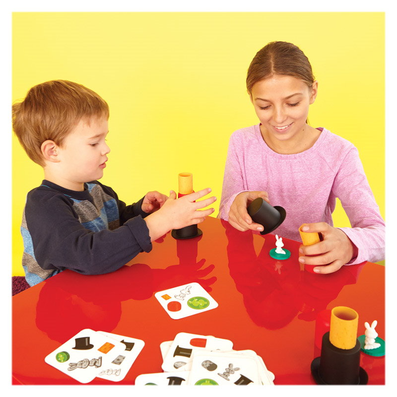 - Cum se joaca: Fiecare jucator primeste cate un set de magie: un joben, o cupa, un cilindru, un iepuras si o moneda. Cand toti jucatorii sunt pregatiti, cartea provocare este intoarsa cu fata in sus si se aseaza la mijloc. Toti jucatorii incep in acelasi timp si incearca sa aranjeze sub forma unui turn obiectele din recuzita proprie, respectand indiciile de pe carte.