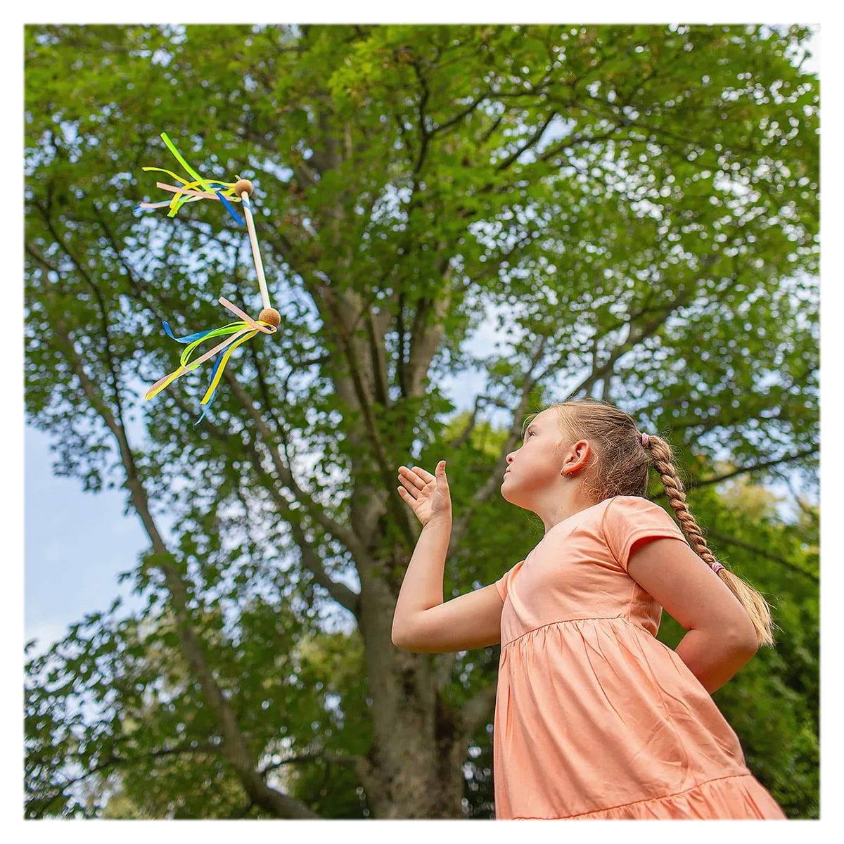 - Bucura-te de cele mai frumoase figuri artistice si fa-ti abilitatile de dans si jonglerie si mai spectaculoase cu acest bat din lemn cu panglici colorate la capete.