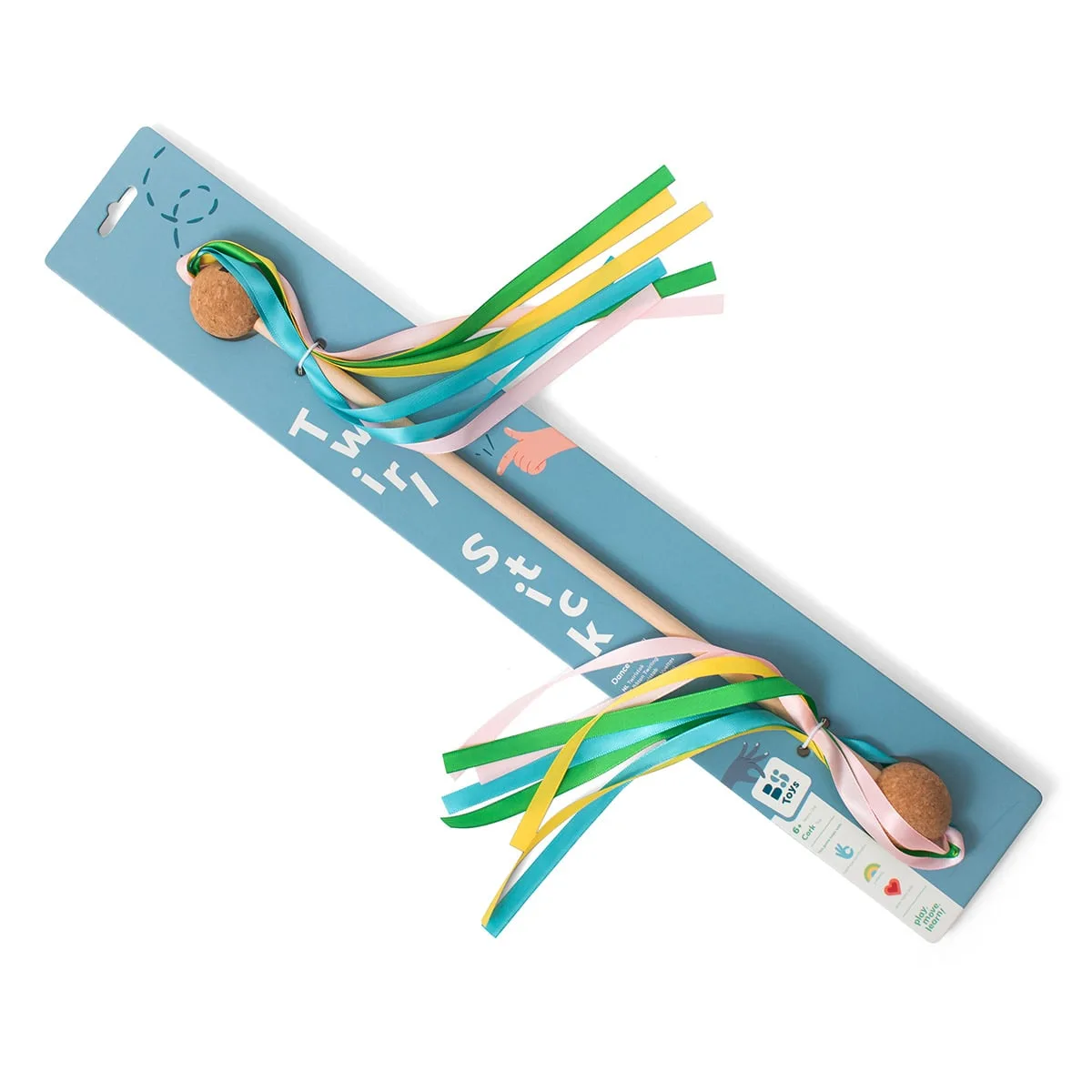 - Batul este fabricat din lemn cu capete rotunde din pluta si panglici colorate din material.