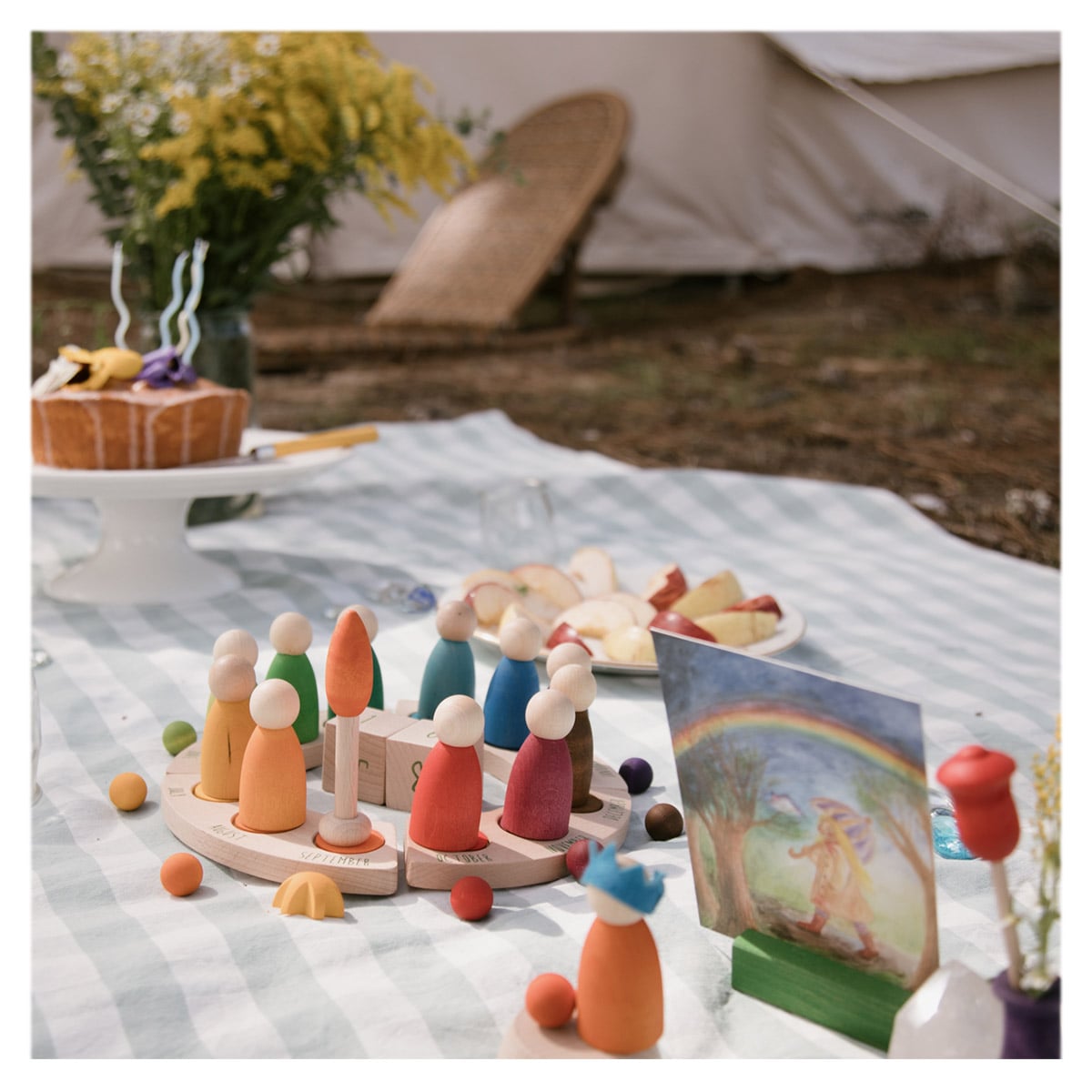 - Perfect pentru a fi combinat cu Calendarul Waldorf, lunile – Grapat (care se vinde separat), acest set ofera o modalitate practica de a intelege conceptul abstract al timpului, transformand o zi speciala intr-o ocazie memorabila.